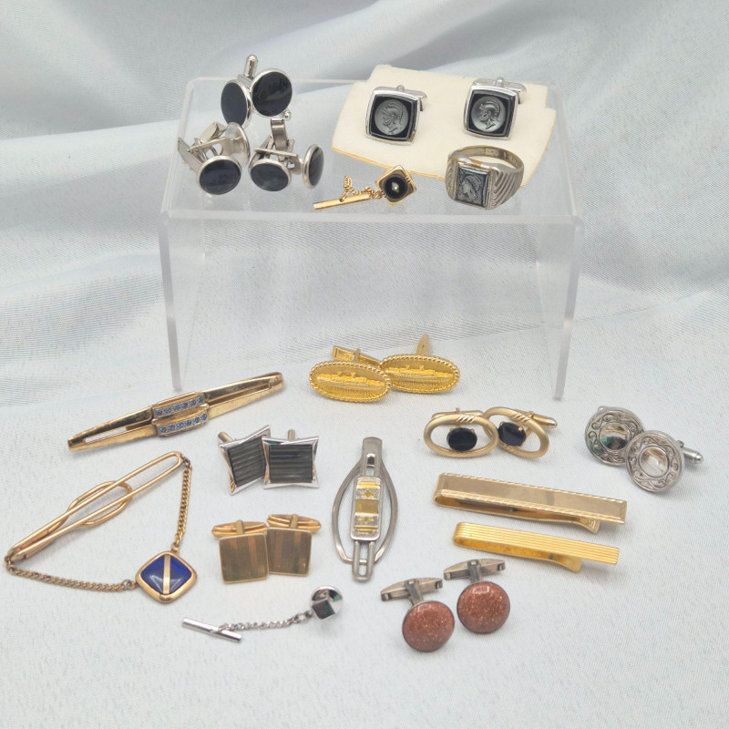 A versatile collection of men’s vintage jewelry and accessories, blending classic refinement with mid‑century craftsmanship:
