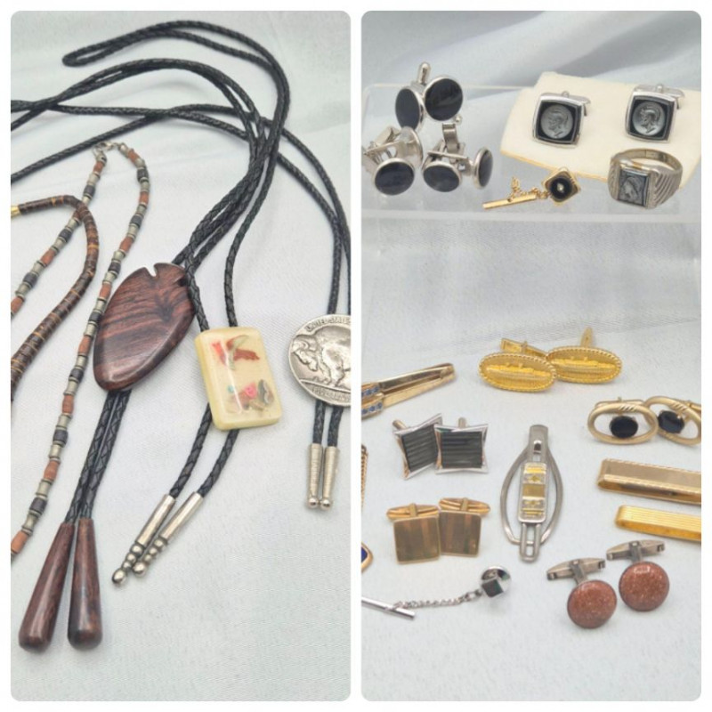 Lot # 112 - Gentlemen's Jewelry Assortment: Cufflinks, Bolo, Tac Pins, Money Clips