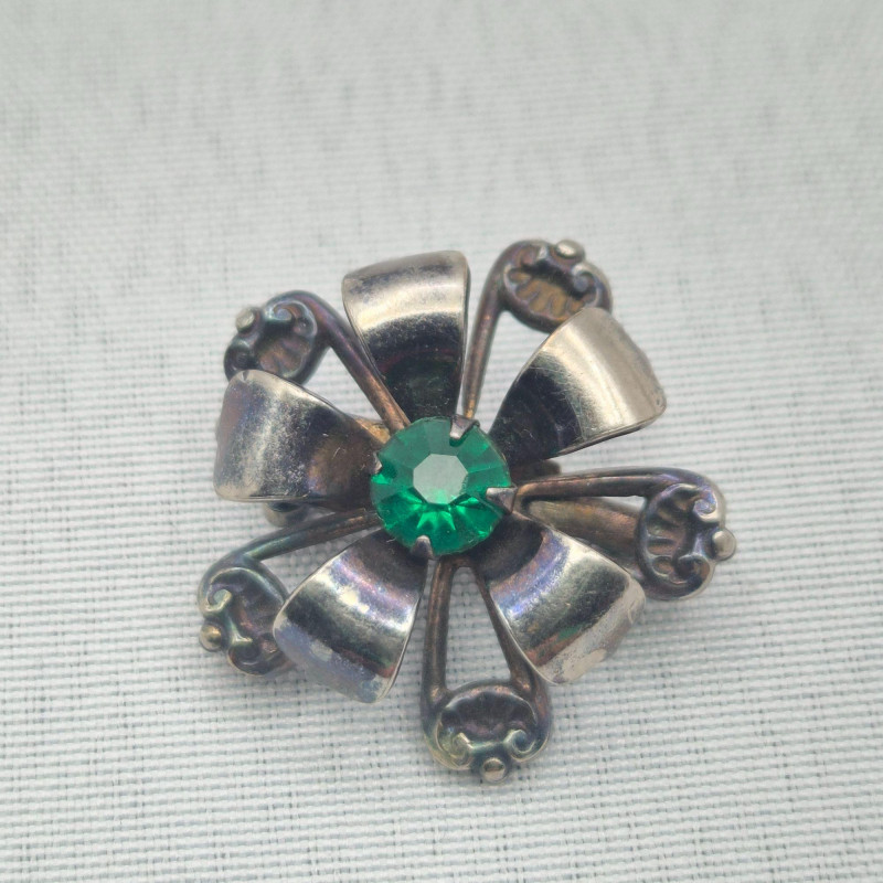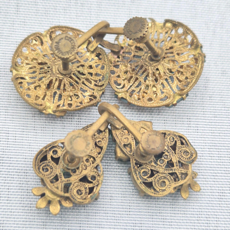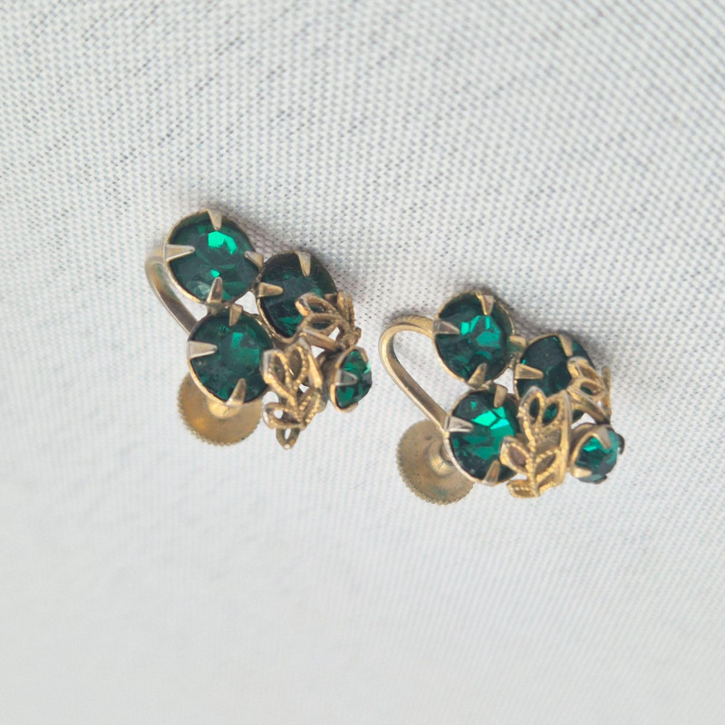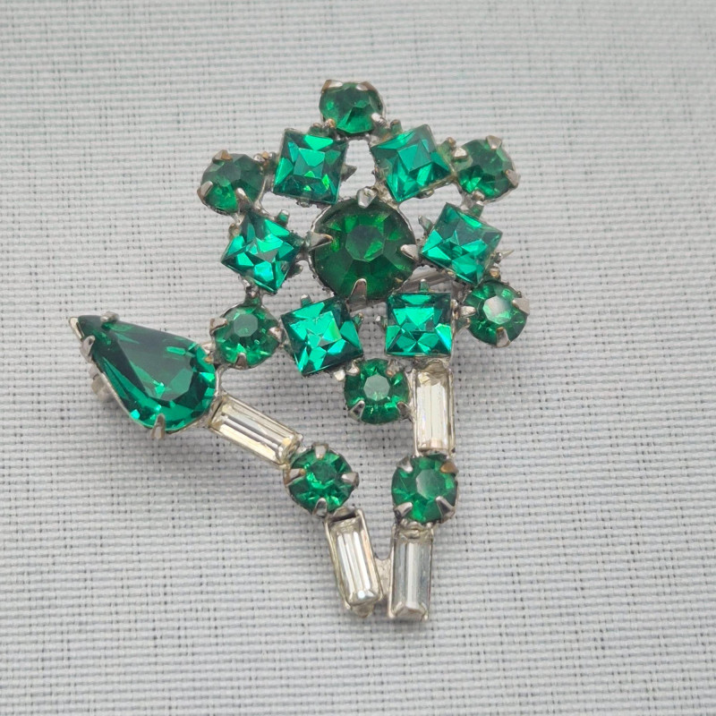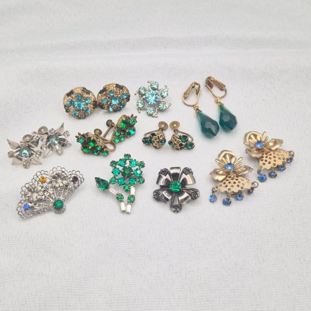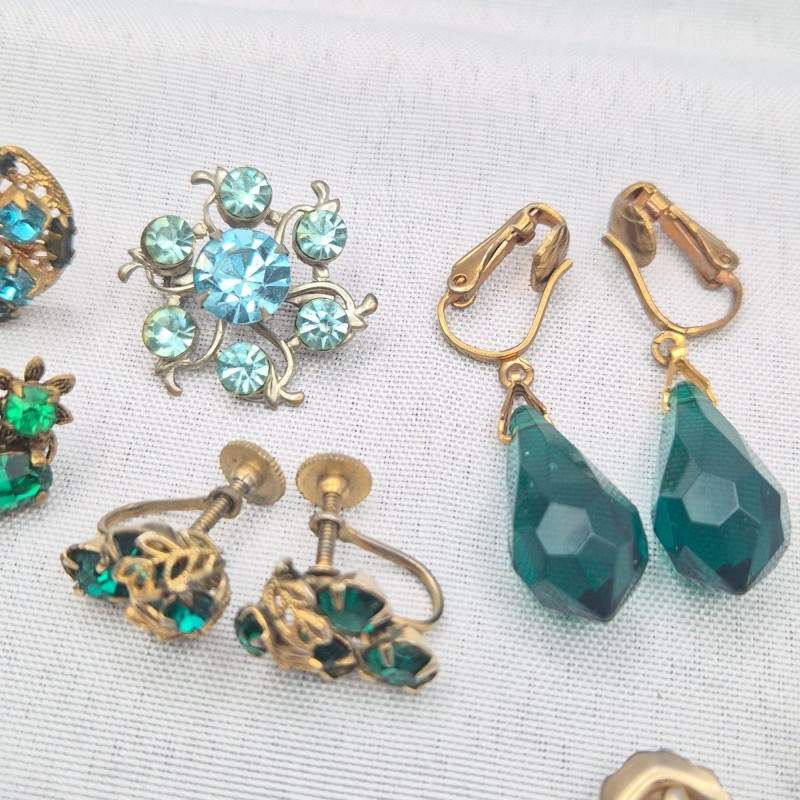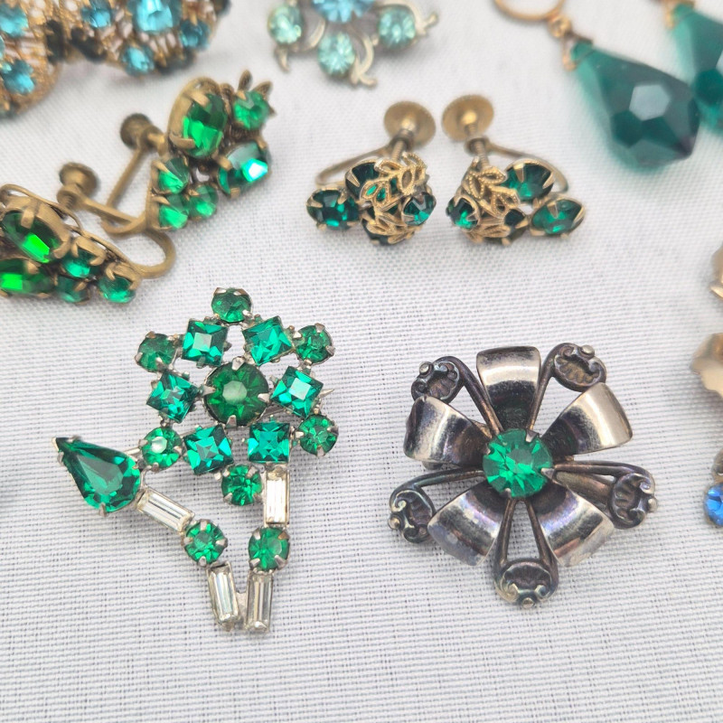Lot # 130 - Vintage 1950’s Jewelry: Green & Blue Rhinestone Pins & Earrings