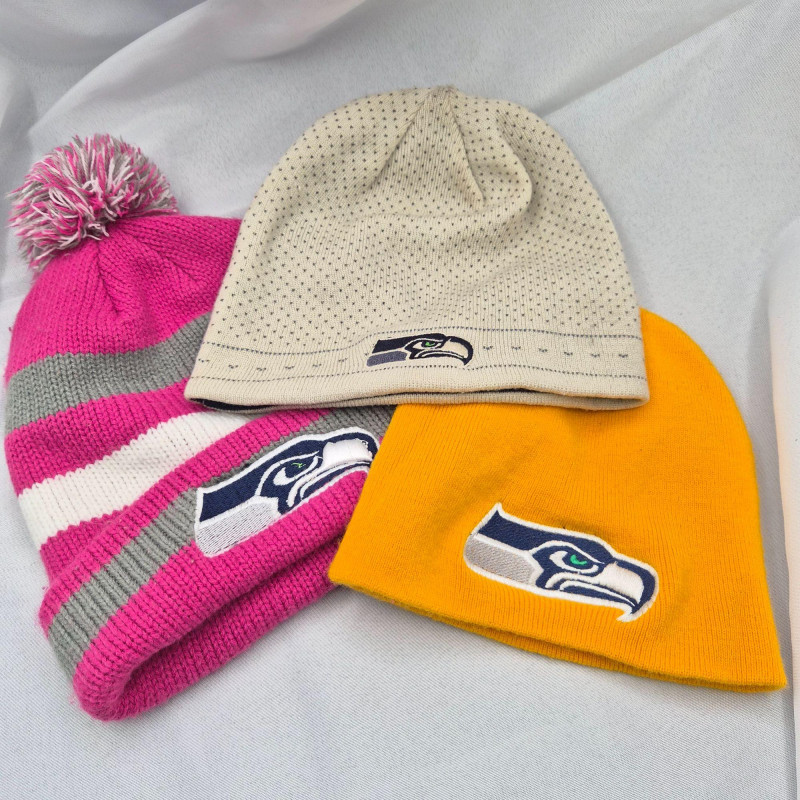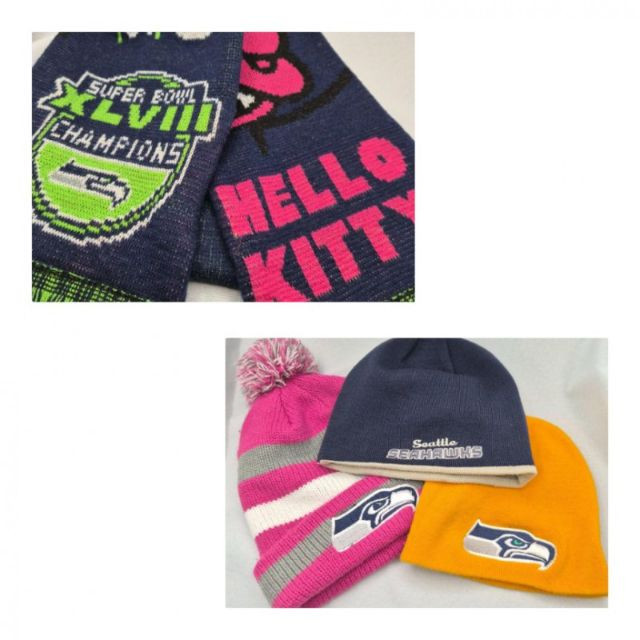 Lot # 132 - Seattle Seahawks Winter Gear: NWT Hello Kitty Scarf & Knit Beanies