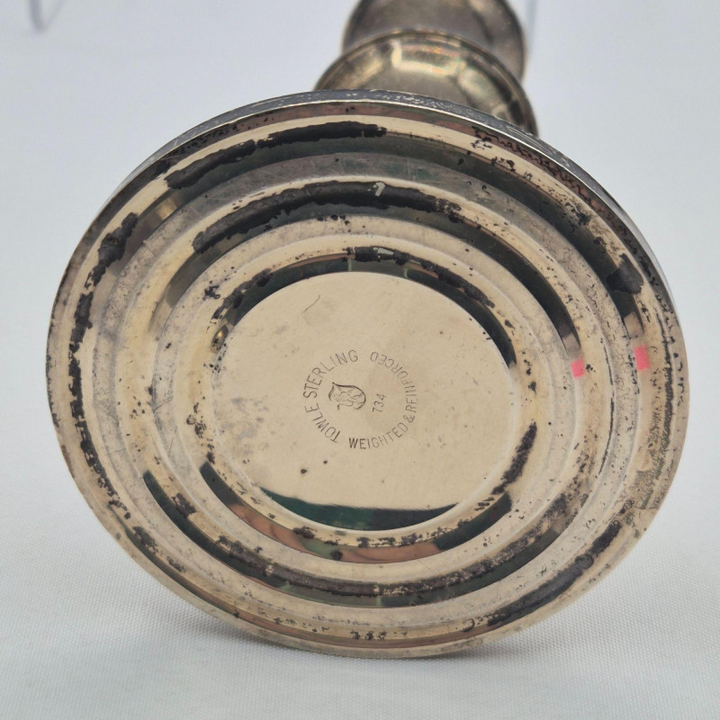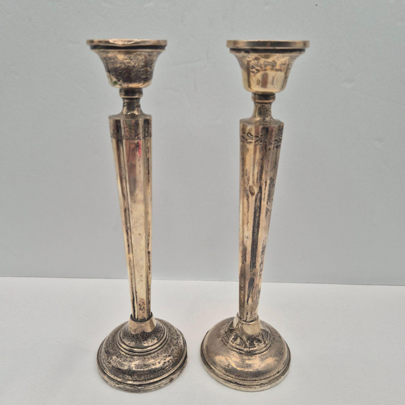 A classic mixed lot of weighted sterling silver candlestick holders, perfect for display, repurposing, or silver scrap value. All pieces are weighted sterling silver and show natural tarnish from age; a simple polish will restore their shine. Ideal for collectors, decorators, or silver recyclers.