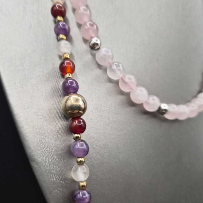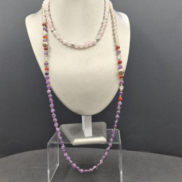 Lot # 18 - Sophisticated Gemstone Necklaces - Amethyst, Pink Quartz & Carnelian