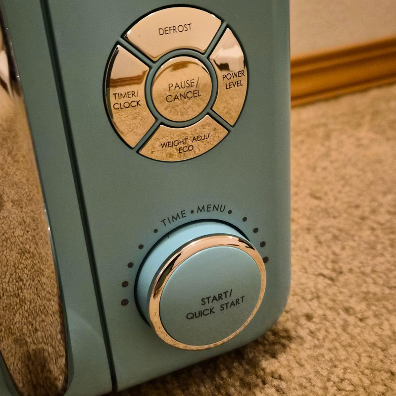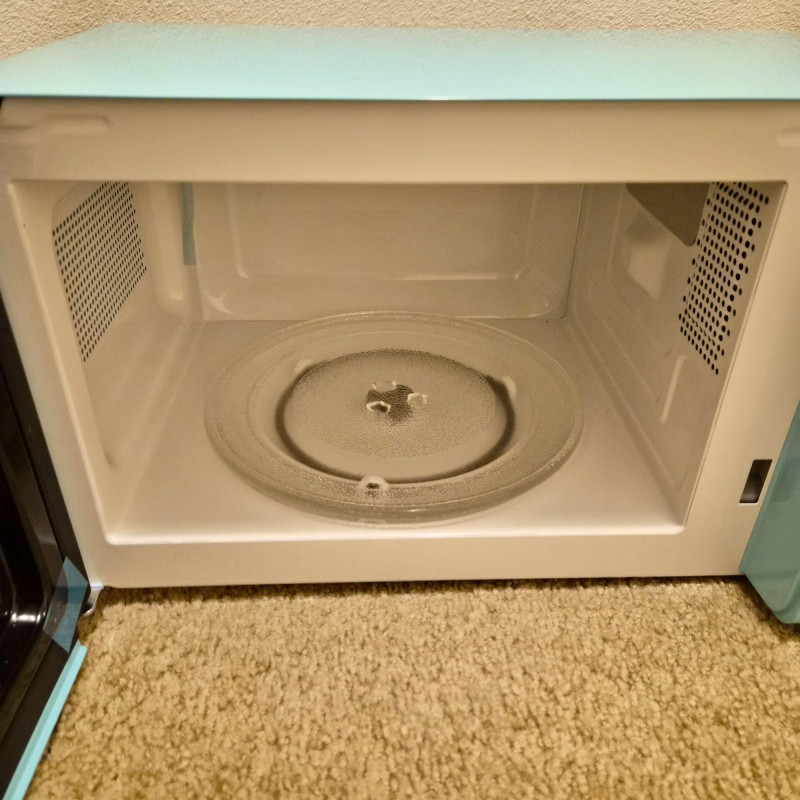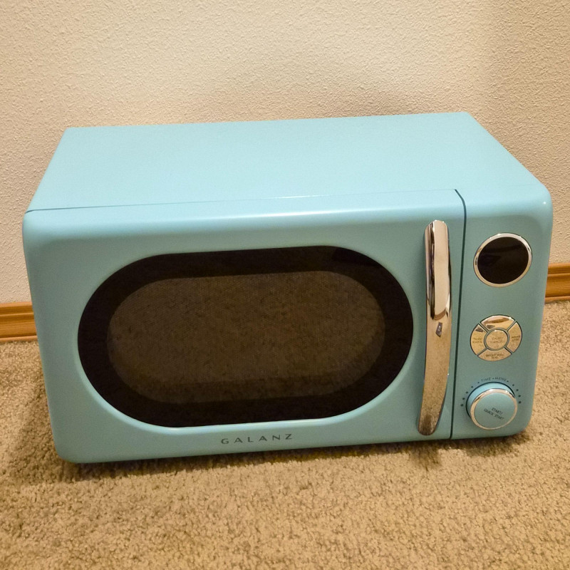 A pop of retro charm with modern convenience, this Galanz Retro Bebop Blue Microwave Oven delivers style as much as function. Finished in a vibrant mid‑century–inspired blue with chrome‑tone accents, it’s the perfect countertop statement piece for vintage‑lovers and design‑forward kitchens. This unit is unused, with the box opened only for inspection. Compact yet capable, it offers 0.7 cu. ft. capacity and 700 watts of power—ideal for apartments, dorms, offices, or anyone who wants a dash of nostalgia without sacrificing performance. A fun, functional accent that blends beautifully into retro, eclectic, or colorful kitchen décor.