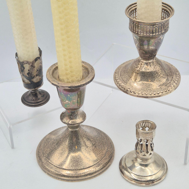 Lot # 76 - Sterling Candlestick Holders & Vintage Honeycomb Candles