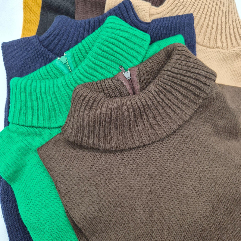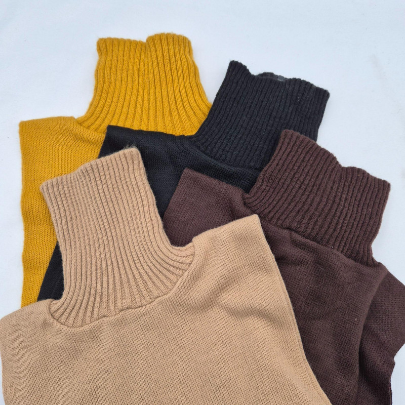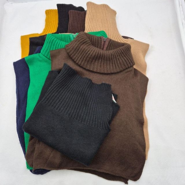 A retro‑cozy assortment of eight women’s turtleneck dickies from the 1970s–80s, perfect for layering or vintage styling. The collection includes four zip‑front styles and four classic pullover styles, all in soft acrylic with cable‑knit necks. Labels include Arrow Ski Lodge, Japan, and others. Color assortment: (2) Black, (2) Dark Brown, (1) Light Tan, (1) Marigold, (1) Navy, and (1) Green. A versatile, era‑authentic bundle ideal for costume wardrobes, winter wear, or collectors of vintage apparel.