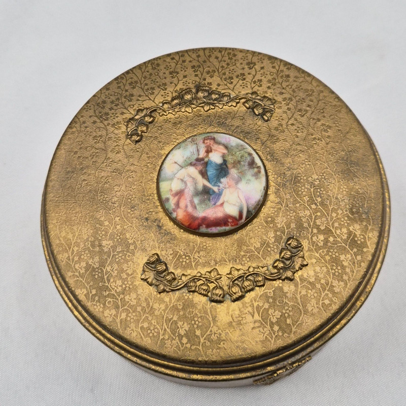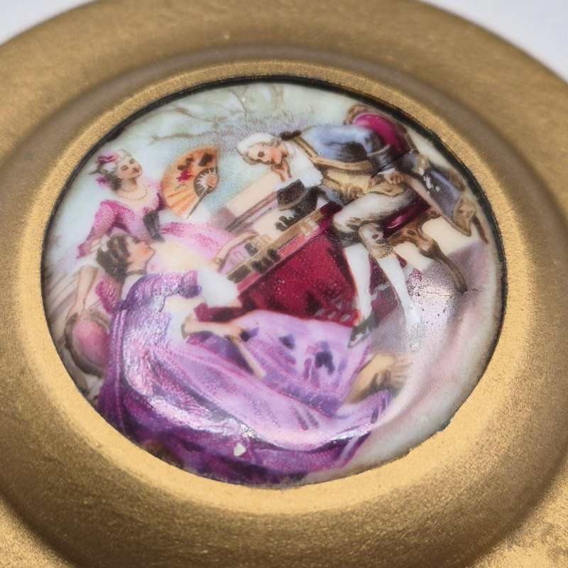 Lot # 60 - Hand Painted Porcelain - Powder Box, Hand Mirror, Purses