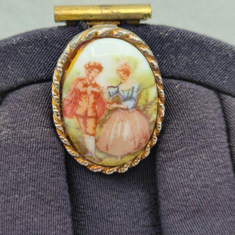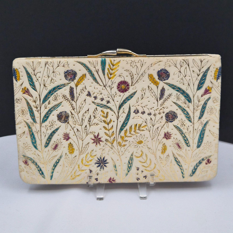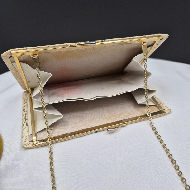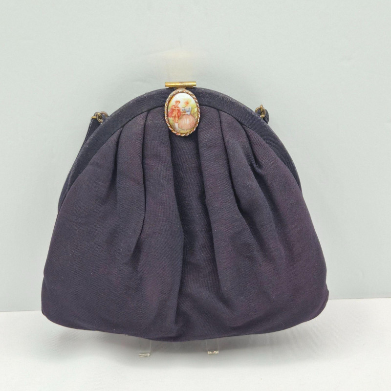 Vanity and accessory collection, blending hand‑painted porcelain, vintage purses, and decorative mirrors. This eclectic lot includes:
