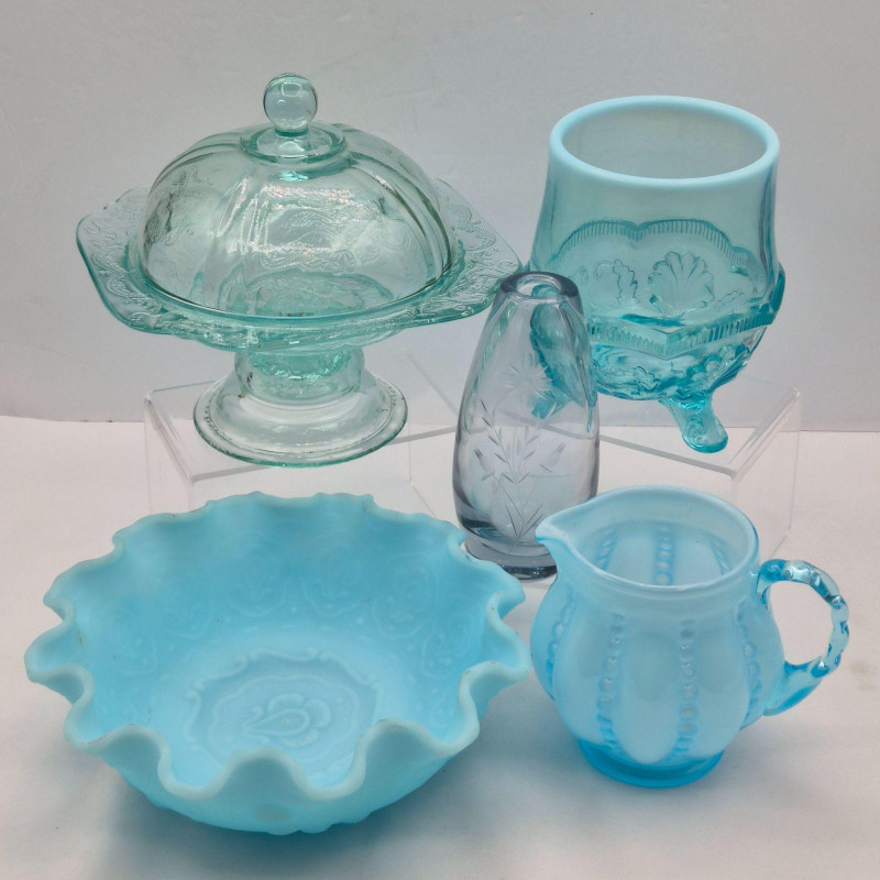 Lot # 67 - Indiana, Fenton, Model Flint Glass Collection - Blue, Green Hues