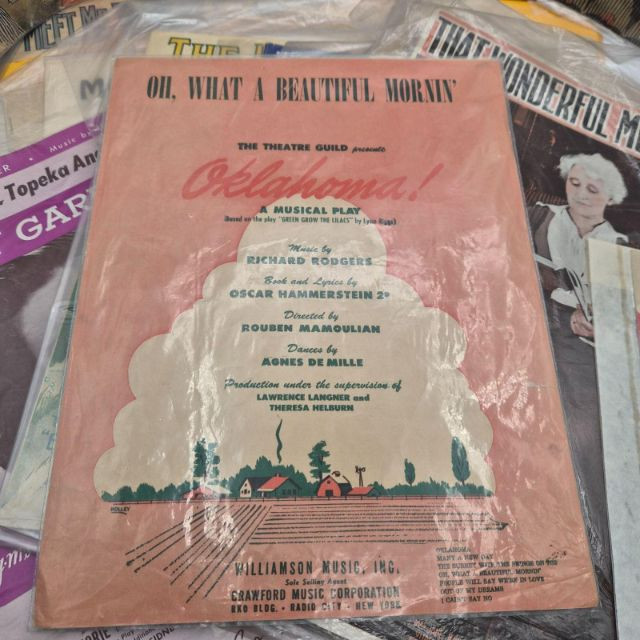 Early to mid-20th century piano sheet music, featuring colorful covers, theatrical flair, and sentimental melodies. This curated lot includes: Romantic ballads and lively show tunes Portrait covers of performers and composers Titles from musicals, orchestral arrangements, and popular hits of the era Highlights include “Oh! Johnny, Oh! Johnny, Oh!”, “Put Your Arms Around Me Honey,” “On the Atchison, Topeka and the Santa Fe,” and selections from State Fair and Madame Sherry. Many pieces feature ornate typography, vintage advertisements, and performance credits—deal for display, play, or preservation. Perfect for pianists, music historians, or anyone drawn to the visual and melodic charm of vintage sheet music. Pages are in various condition.