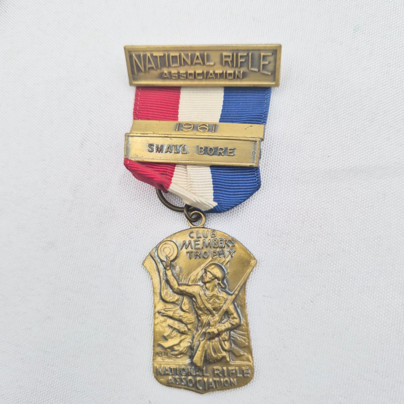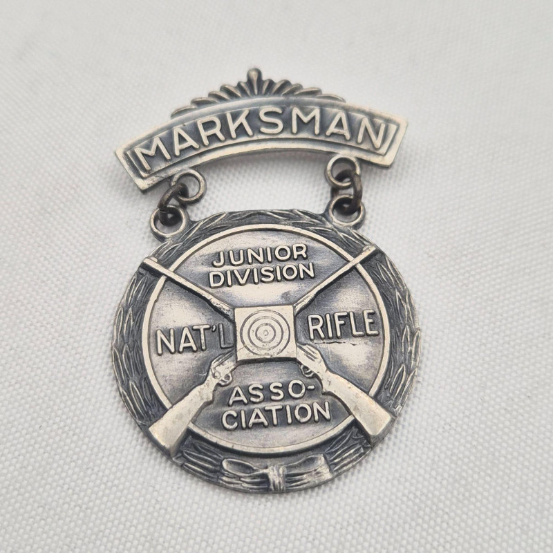 A compelling assortment of vintage National Rifle Association medals and badges, each representing a distinct achievement or membership tier in American marksmanship history. This lot includes five pieces, ranging from competition awards to membership insignia, with varied designs and inscriptions that reflect decades of NRA tradition. Includes: A rich grouping for collectors of shooting sports memorabilia, military history, or vintage American organizations.