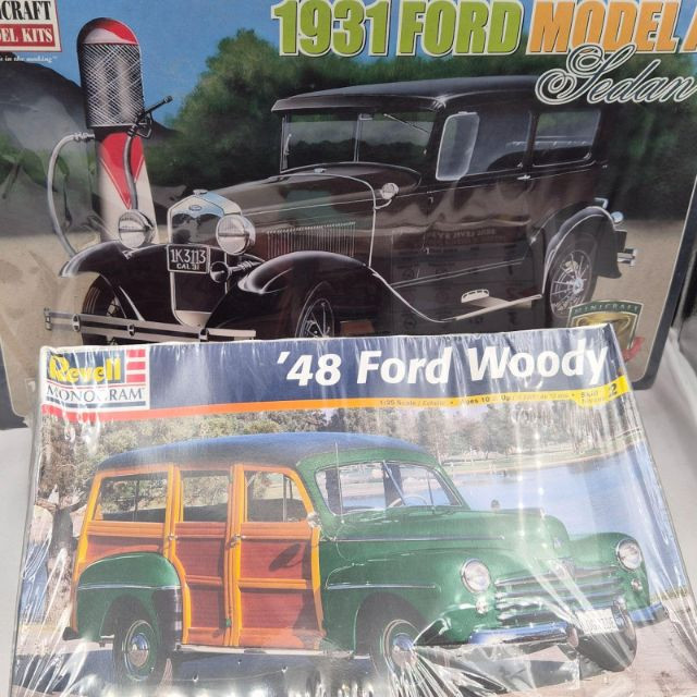 A nostalgic duo of vintage Ford model kits, both factory sealed despite some wear to boxes and seals. These kits offer classic American automotive styling and collectible packaging from two respected brands: Both kits remain unopened, ideal for display or assembly. A great pairing for model enthusiasts, Ford collectors, or anyone drawn to the craftsmanship and Americana of early 20th-century vehicles.