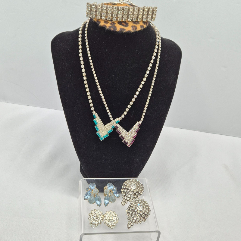 Lot # 81 - Vintage Rhinestones - Earrings, Necklaces, Shoe Clips & Barrette