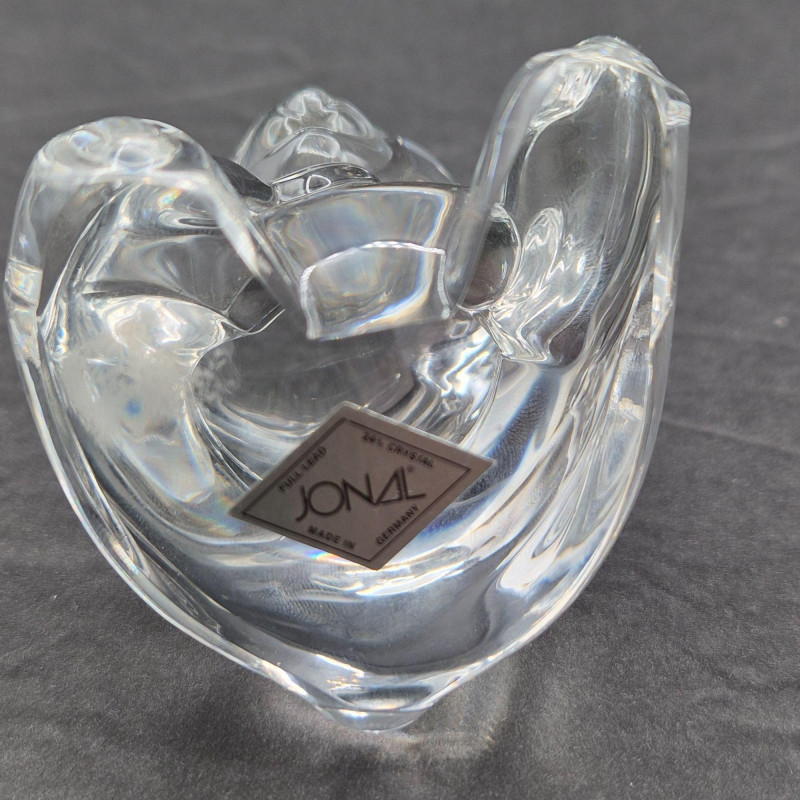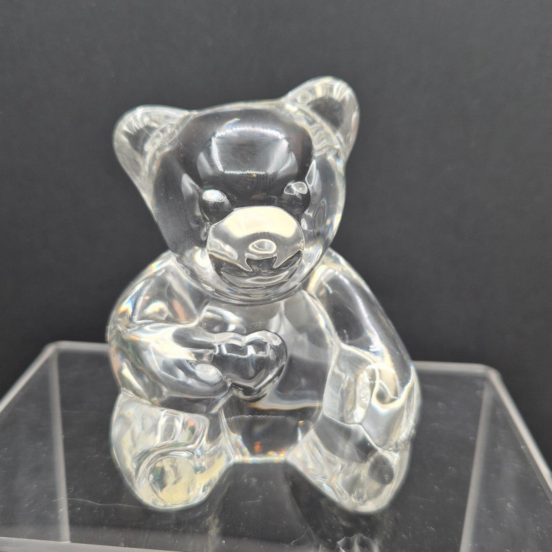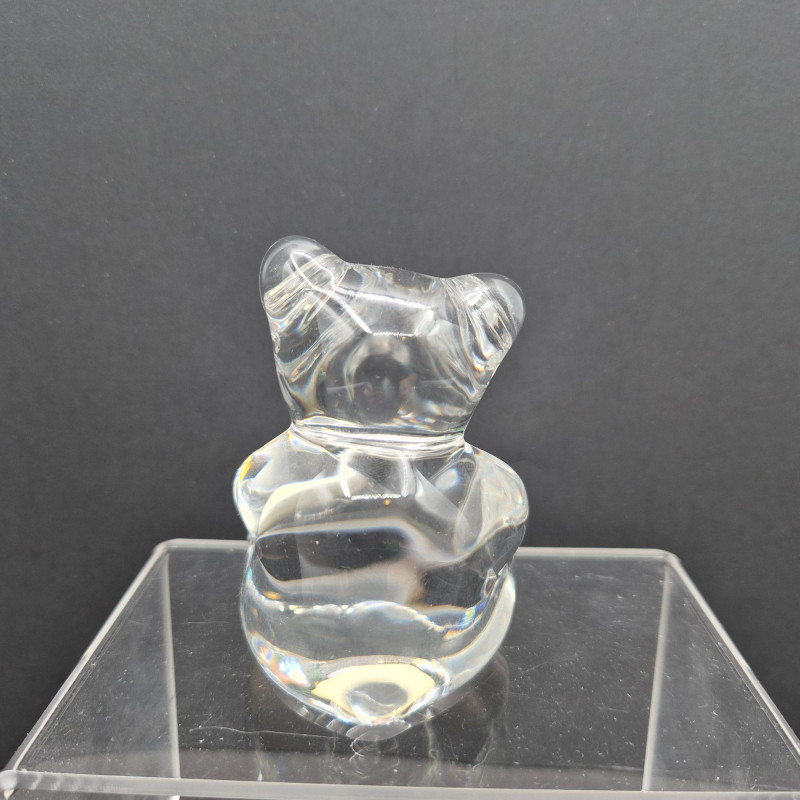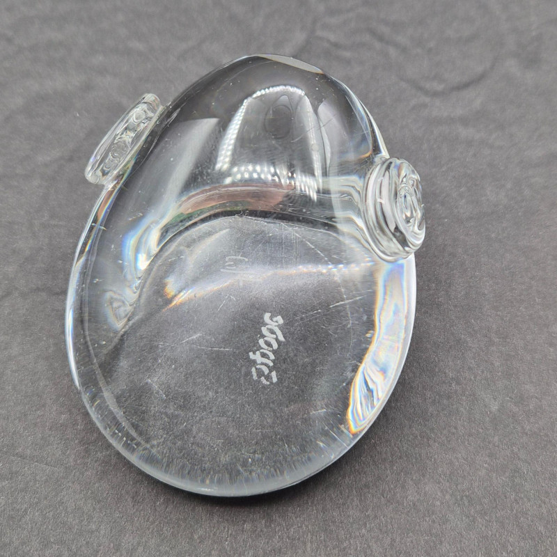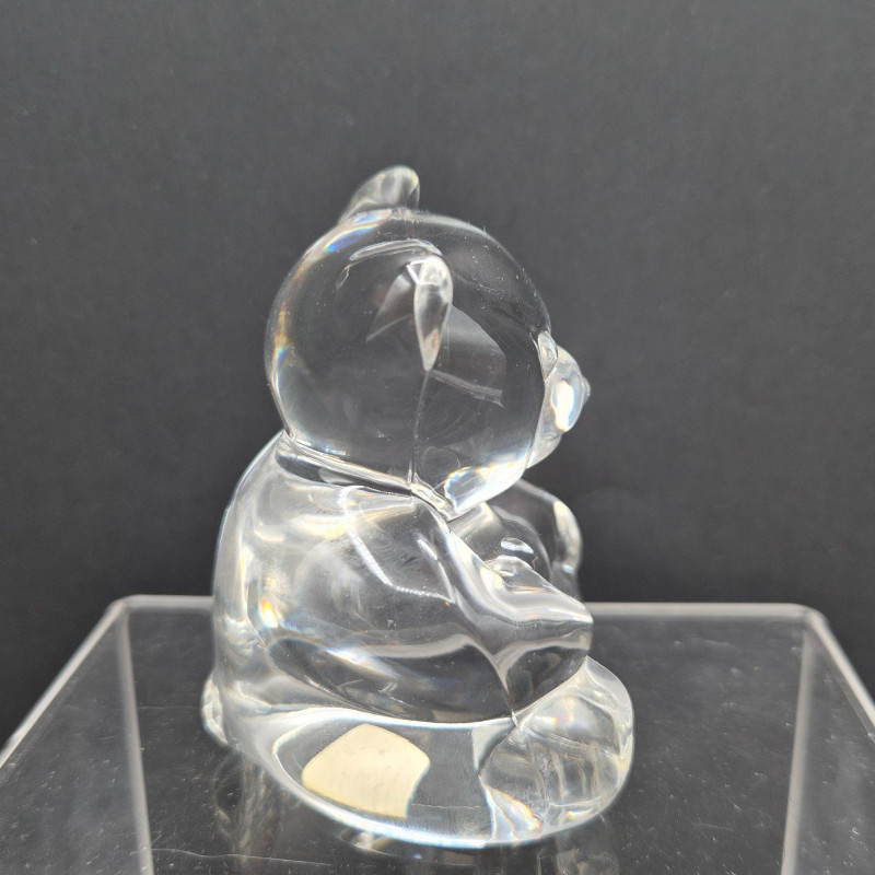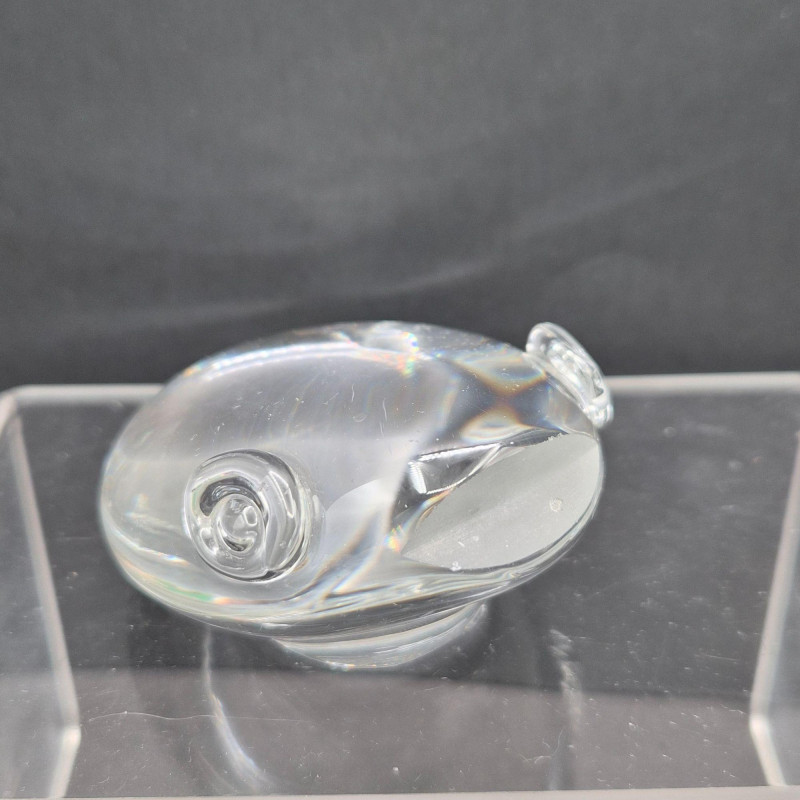 A delightful trio of crystal animal figures from three respected makers. The Jonal crystal love bear, made in Germany, measures approximately 3" x 2.5" x 2.5" and features a warm, rounded silhouette. The Spode crystal frog, 2.25" x 2.75" x 1.5", adds a touch of whimsy and shows a few light scratches/imperfections consistent with age. Completing the group is a sleek Hadeland crystal otter, 5.5" x 1.5" x 2", known for its smooth Scandinavian form and clarity.