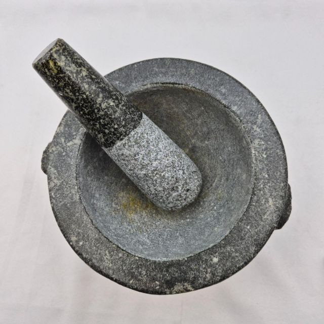 A kitchen essential with timeless utility and striking presence: Solid Granite Mortar – Measures 8" wide x 5" tall. Deep bowl with thick walls, ideal for grinding herbs, spices, and pastes with precision. Granite Pestle – 7.25" long, perfectly weighted for efficient crushing and blending. Origin – Crafted in Thailand, known for producing some of the most durable and effective mortar and pestle sets in the world. This super-heavy, solid granite set is built to last and adds rustic charm to any kitchen. Whether you're making curry pastes, guacamole, or spice blends, this tool delivers both function and authenticity.