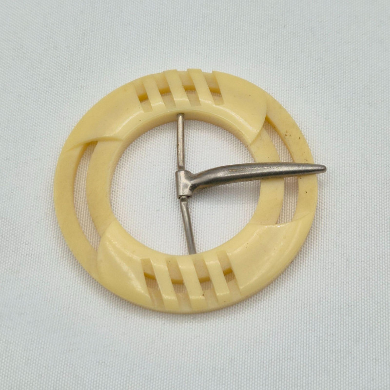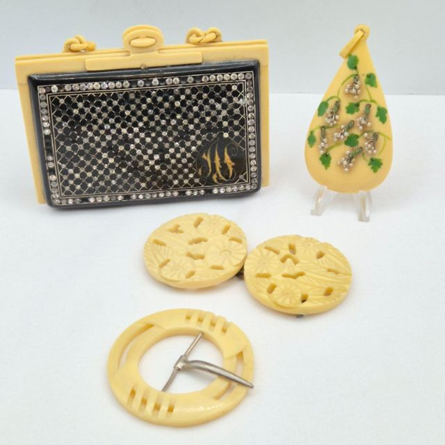 Lot # 102 - Antique Carved Celluloid Buckles, Pendant & Compact Coin Purse