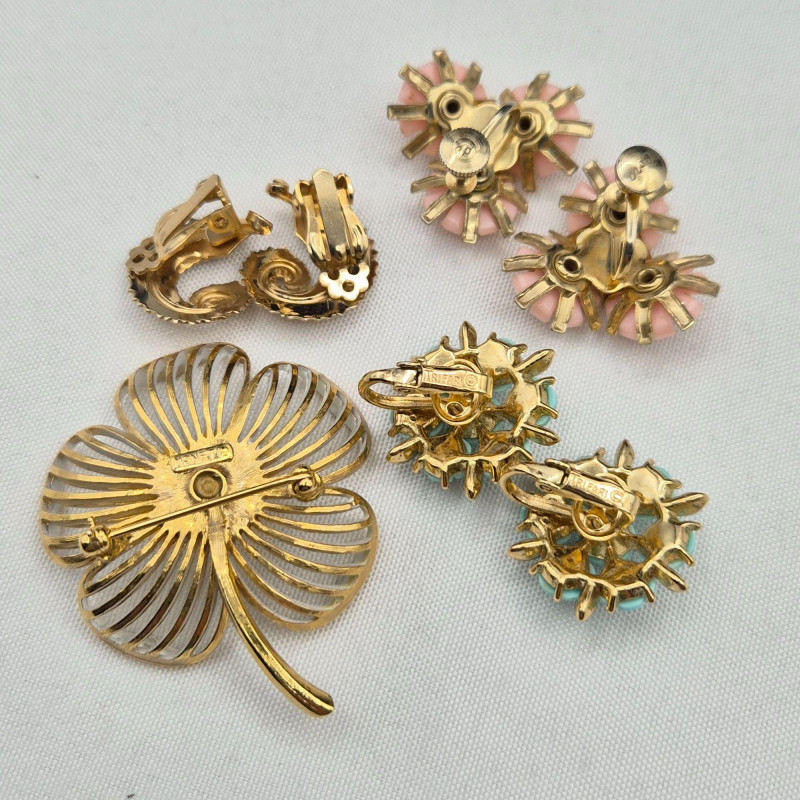 Assortment of classic vintage fashion jewelry, featuring well‑loved name brands known for quality and timeless style. In this mix you’ll discover pieces by Monet, Trifari, Coro, Sarah Coventry, and more. Expect a blend of necklaces, earrings, bracelets, and pins with the signature finishes, textures, and designs that made these makers household favorites. A great lot for collectors, resellers, or anyone who loves the charm of mid‑century and later costume jewelry.