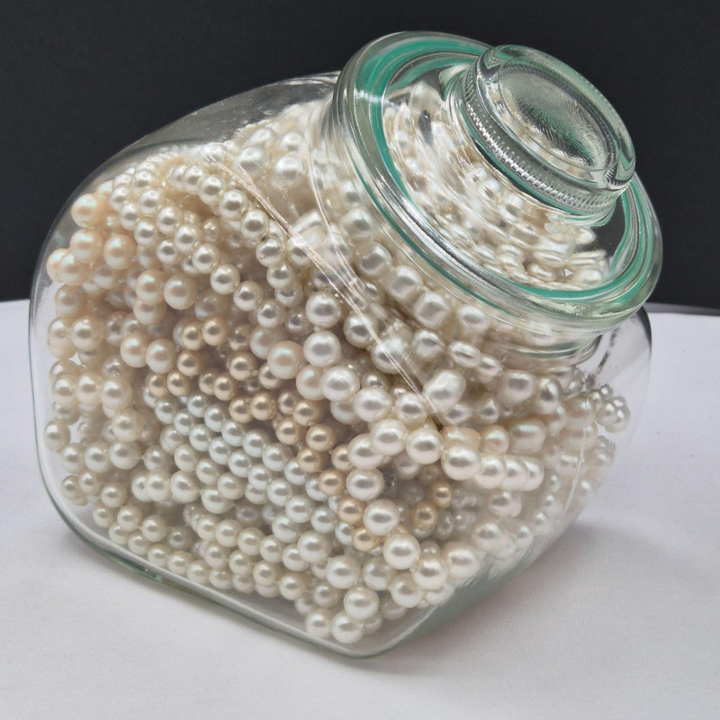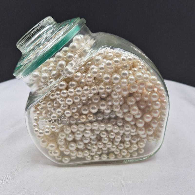 Lot # 108 - Glass Jar Filled Long Strand Faux Pearl Necklaces - Sarah Coventry
