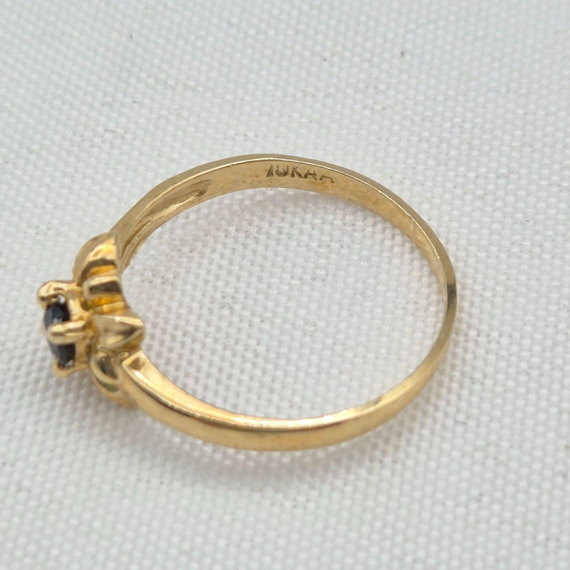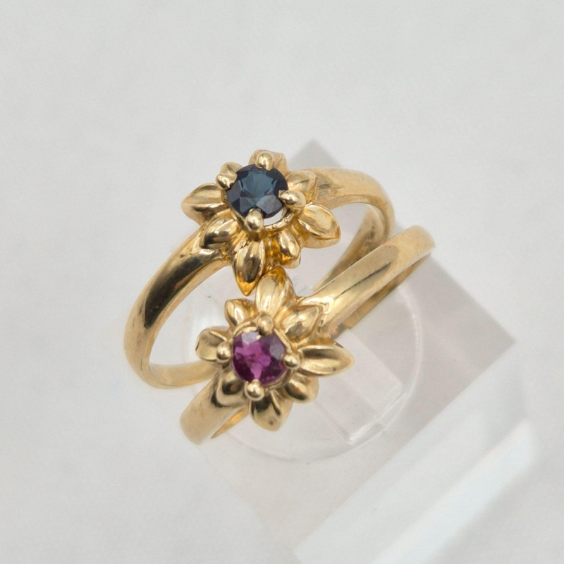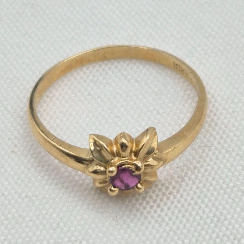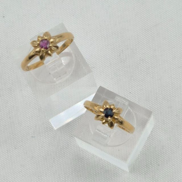 A delicate pair of 10k gold gemstone rings, each featuring a genuine stone set in a floral‑inspired design. These petite beauties offer classic color, feminine styling, and timeless wearability. Details: A lovely matched pair for collectors of fine petite rings, gemstone enthusiasts, or anyone who loves dainty vintage gold.