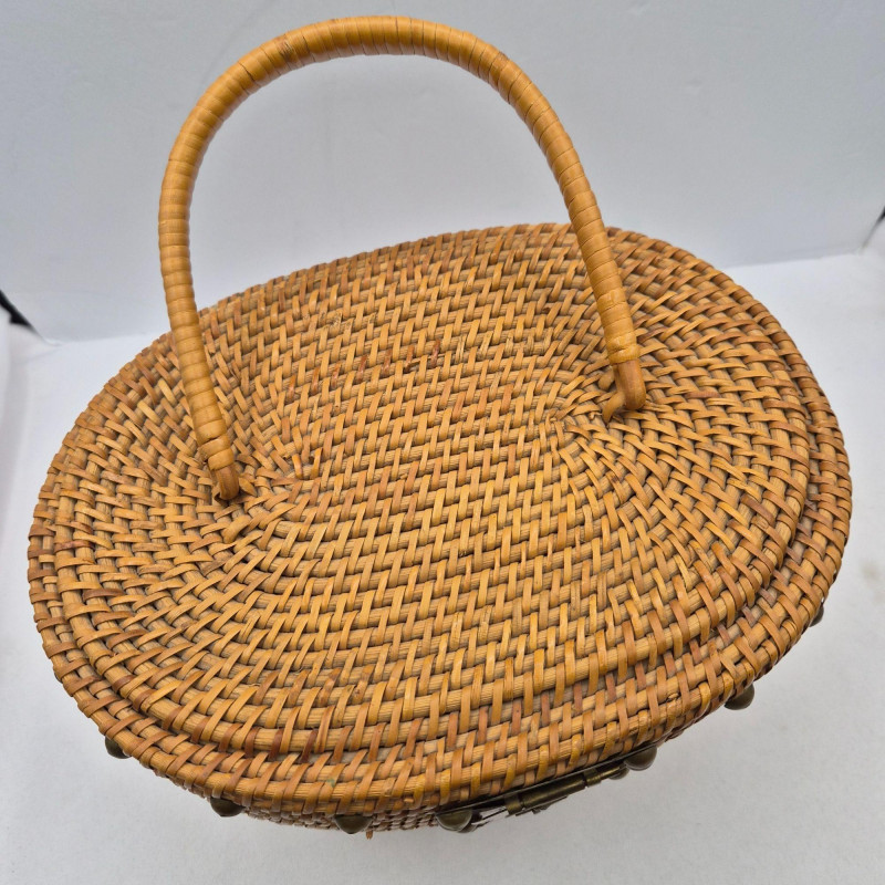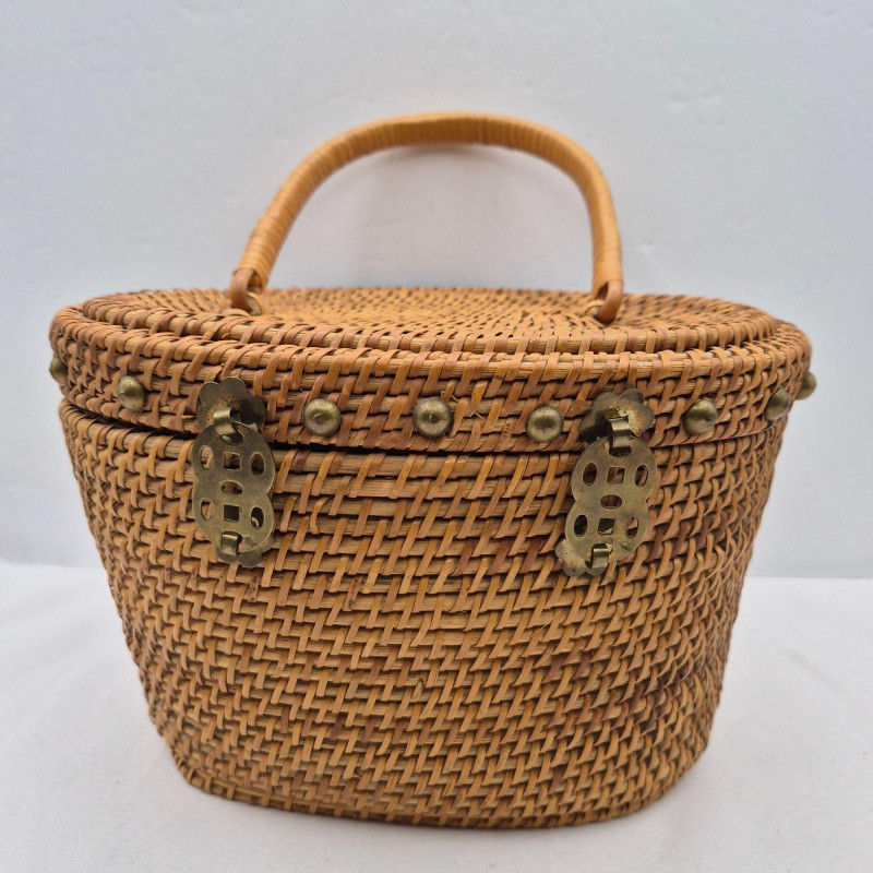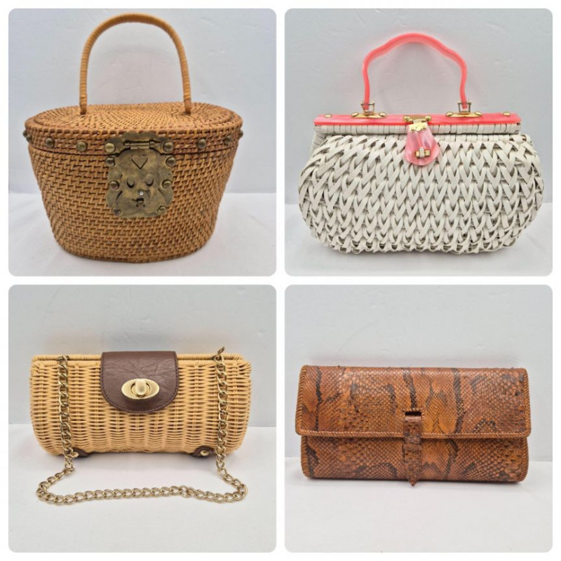 Lot # 125 - Mixed Wicker & Snakeskin Purses — Natural & Lacquered Styles