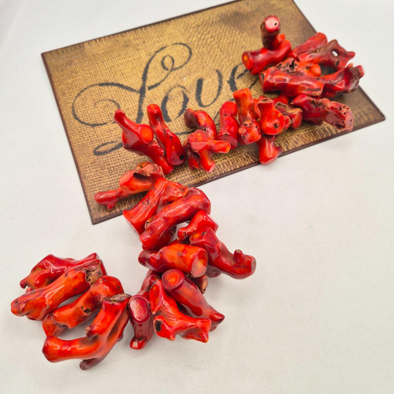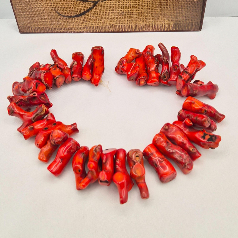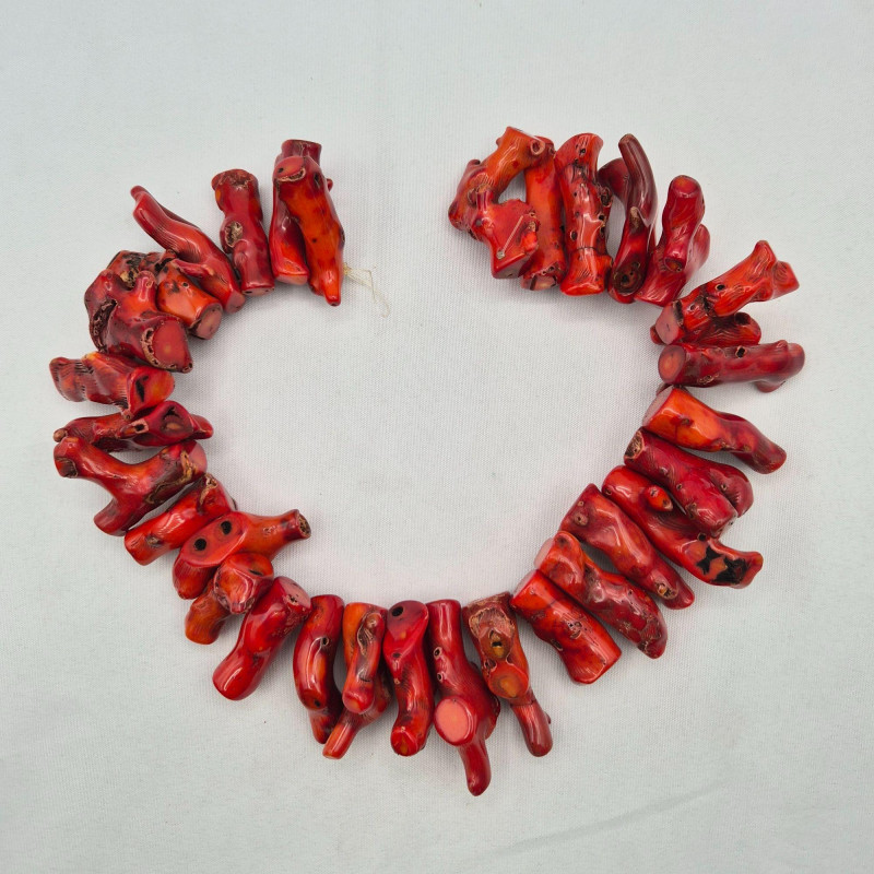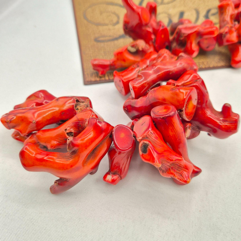 A dramatic 17-inch strand of large, chunky branch red coral, perfect for makers, designers, and bold statement-jewelry lovers. This substantial strand features 31 polished pieces of genuine red coral with natural inclusions, giving each piece its own organic character. The strand is very heavy and high-impact, ideal for: A fantastic supply lot for anyone who loves working with natural, vibrant coral.