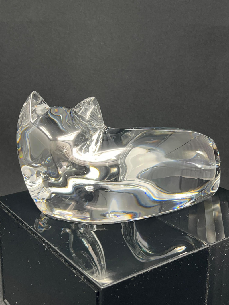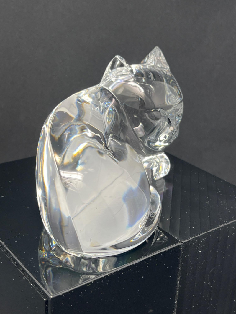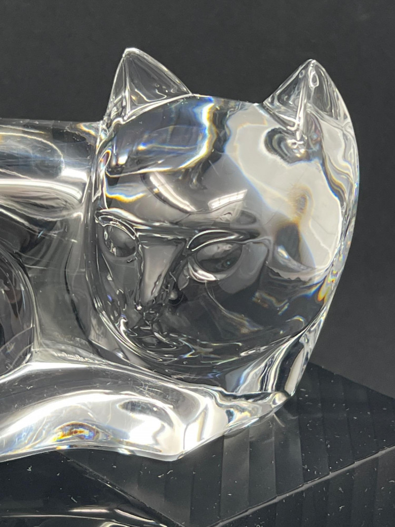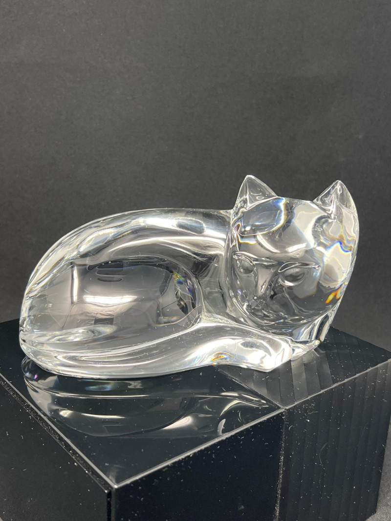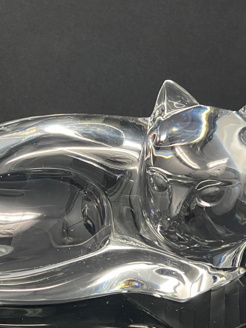 Lot # 12 - Val Saint‑Lambert Signed Crystal Cat Sculpture — “Des Sousa” Model