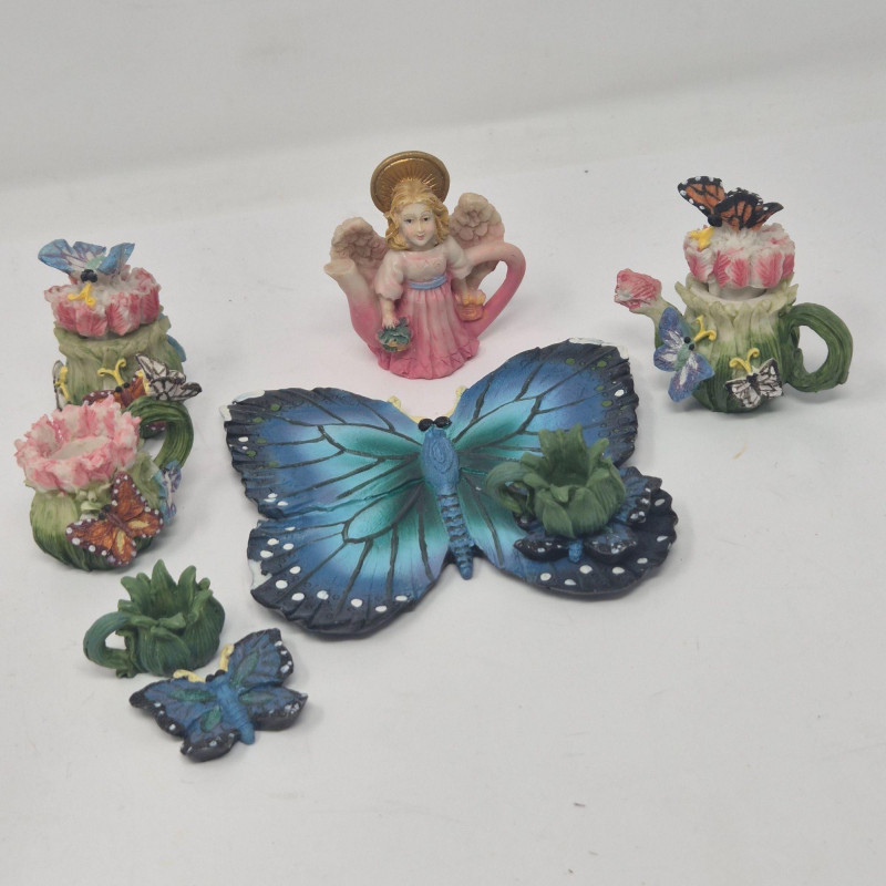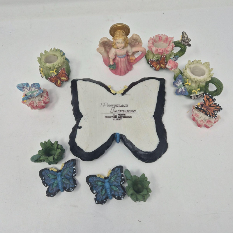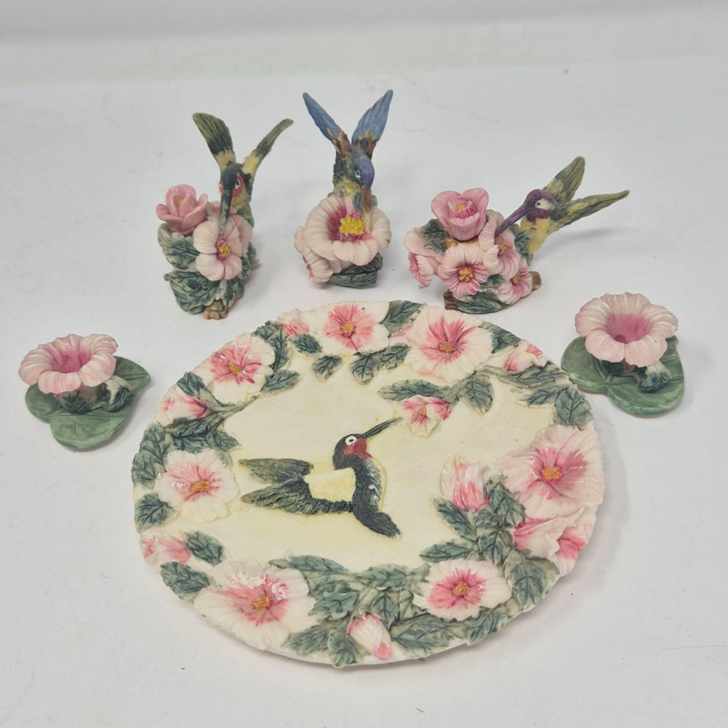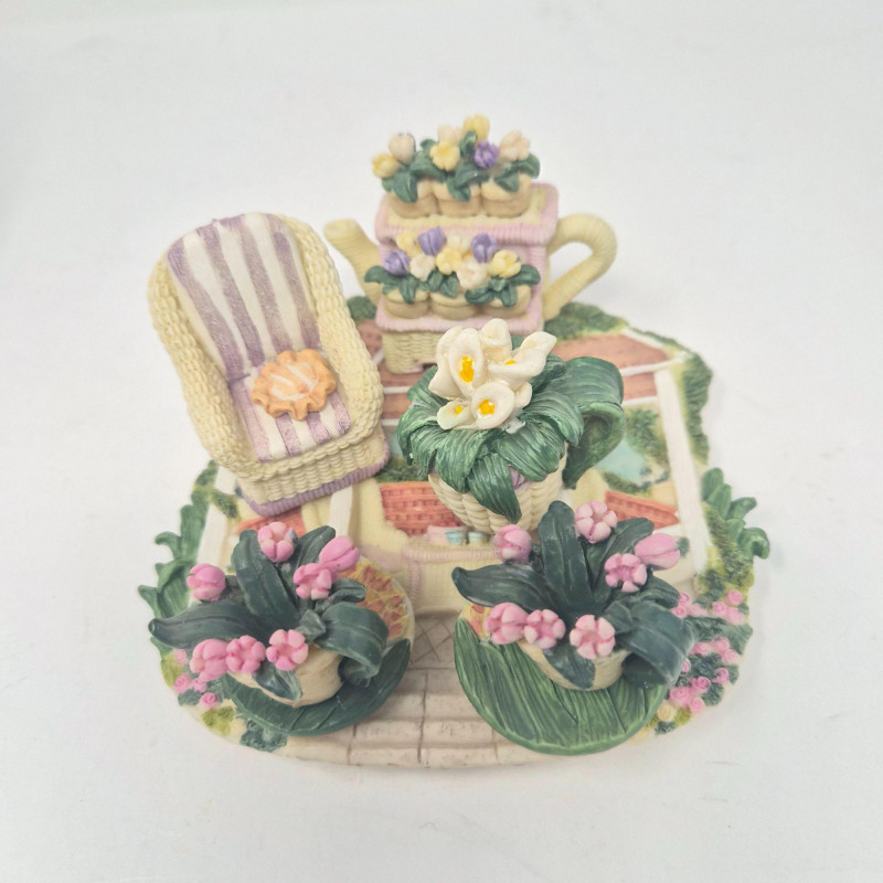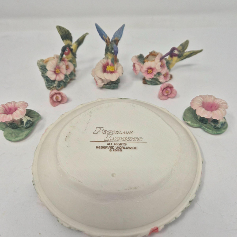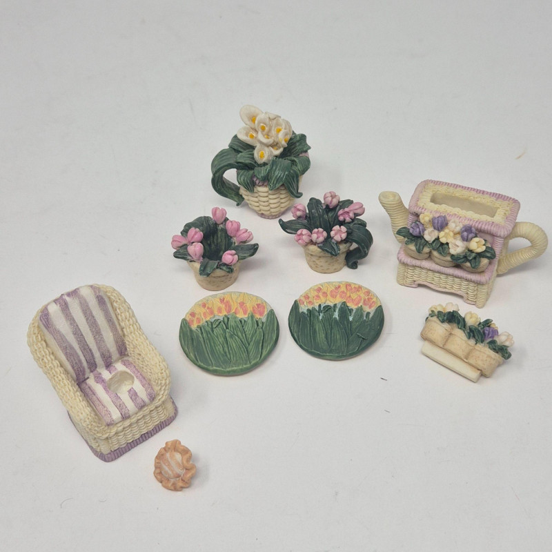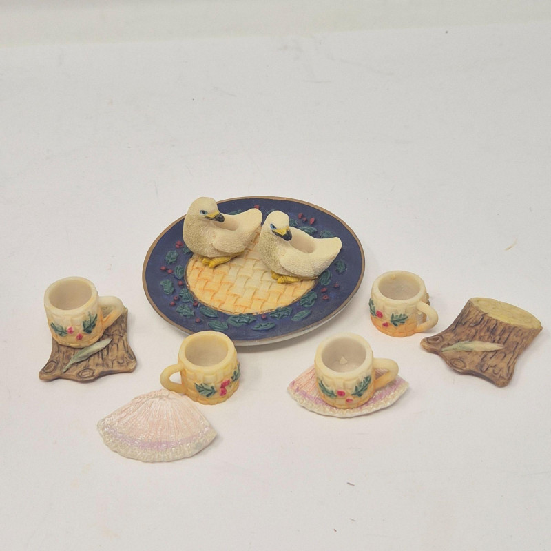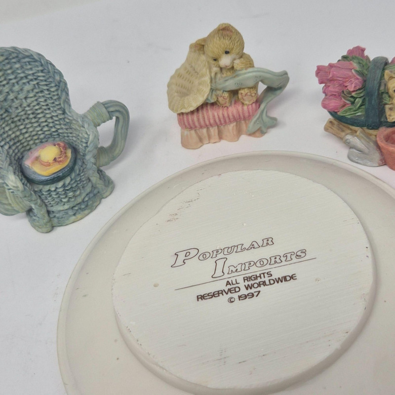 A delightful grouping of five decorative mini resin tea set collections from Popular Imports, dated 1996–1997. Each set features whimsical, highly detailed miniature pieces—perfect for collectors of resin minis, dollhouse accessories, or nostalgic 90s décor. These sets bring a playful charm to shelves, curio cabinets, or themed displays.