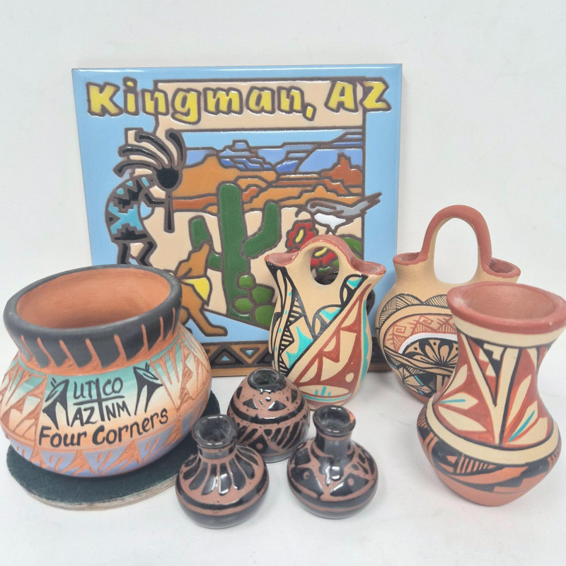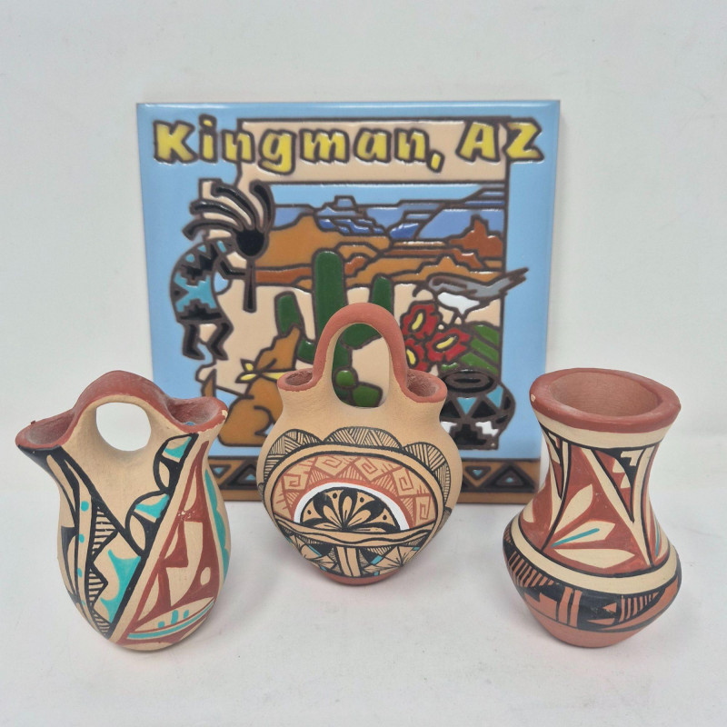 Lot # 27 - Signed Southwest Miniature Pots, Wedding Vases & Artisan Tile