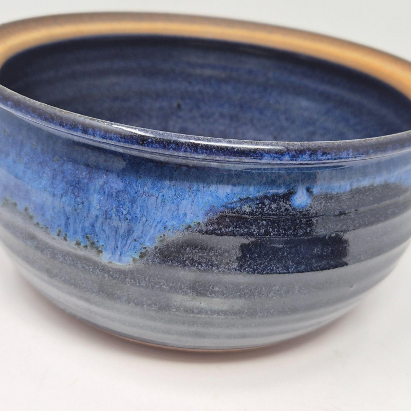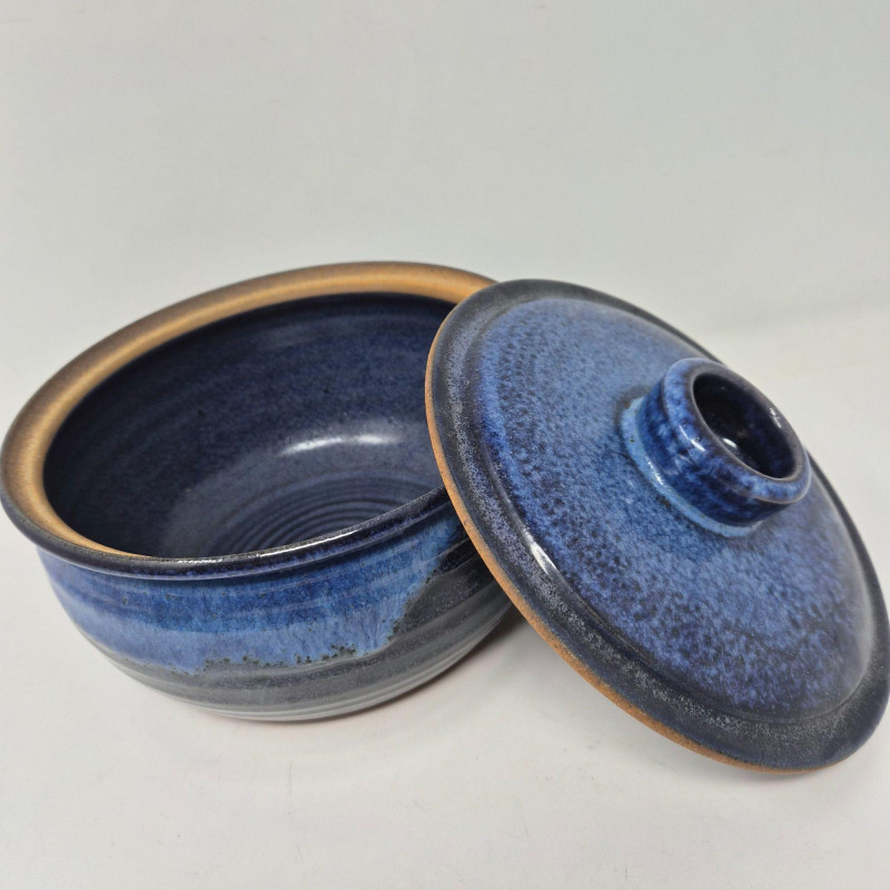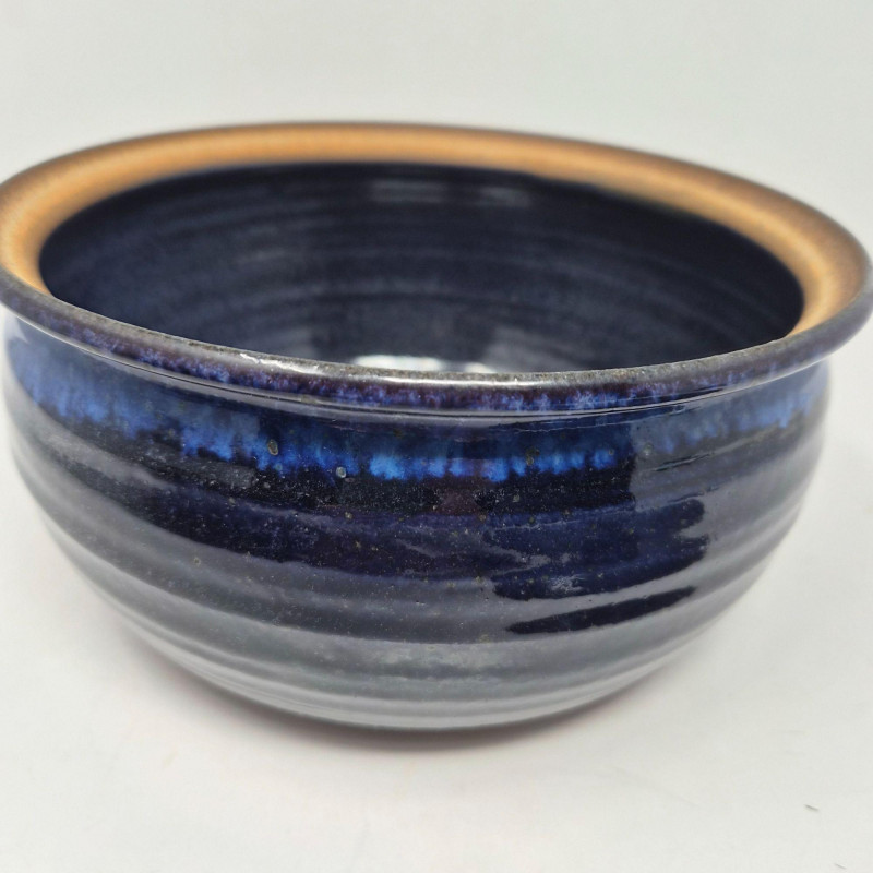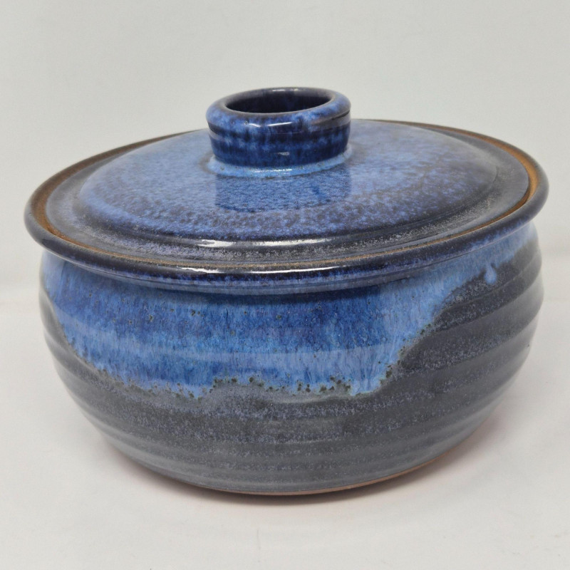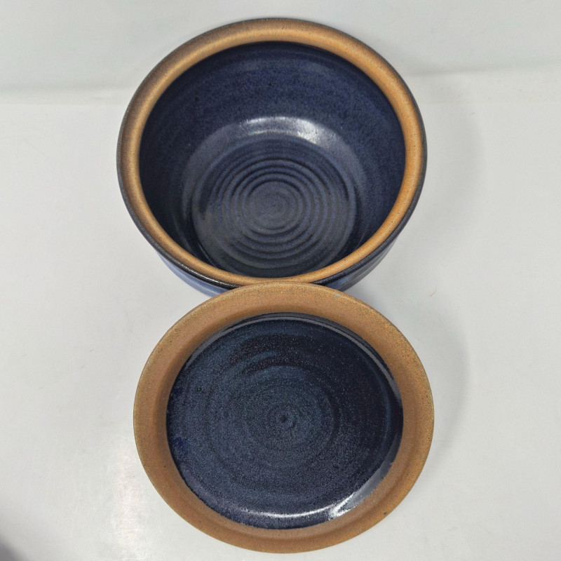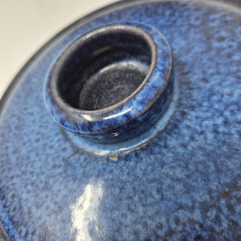 A striking trio of artist‑made studio pottery, each finished in rich blue glaze and individually signed by the makers. This set blends functional form with handcrafted character. Includes: A beautiful grouping for collectors of studio ceramics, lovers of blue‑glazed pottery, or anyone who appreciates unique, hand‑thrown artisan work.