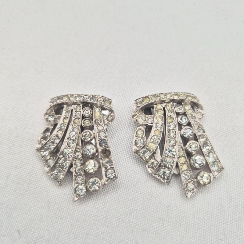 Lot # 33 - Elegant Antique Rhinestone Clips & Pins – Repair or Recreate Lot