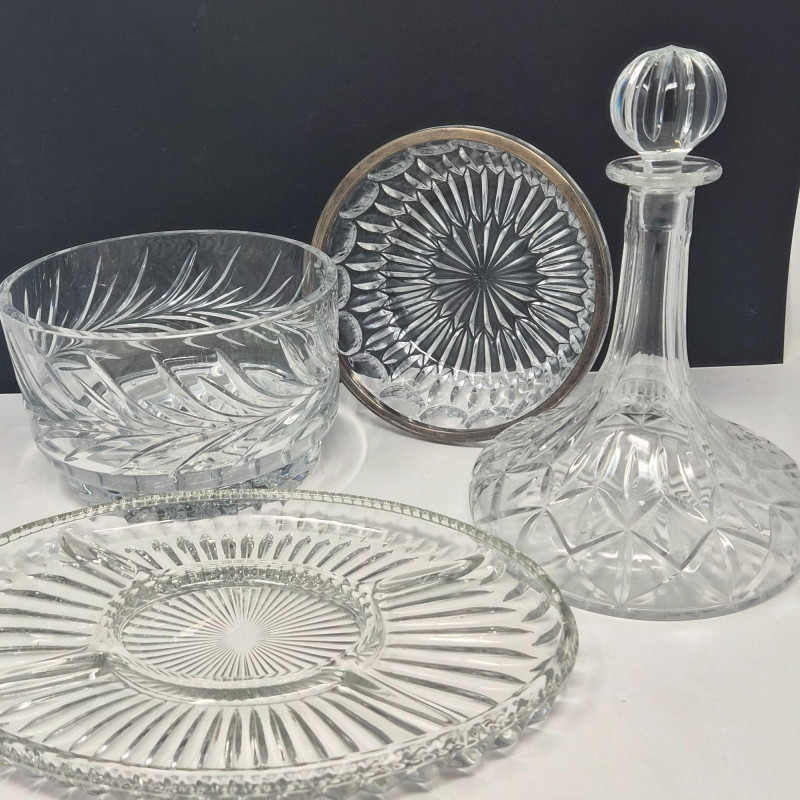 A sparkling assortment of clear crystal and cut glass serving pieces, blending traditional elegance with mid‑century charm. This versatile lot includes: A beautiful grouping for entertaining, display, or adding refined sparkle to any table setting.