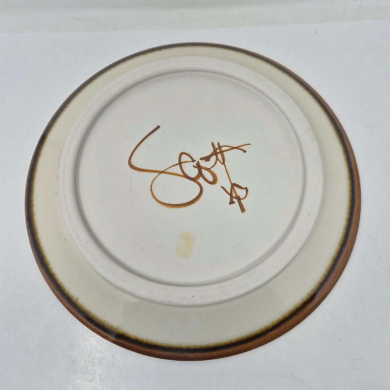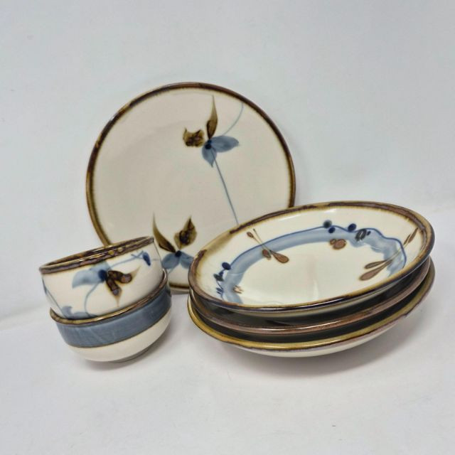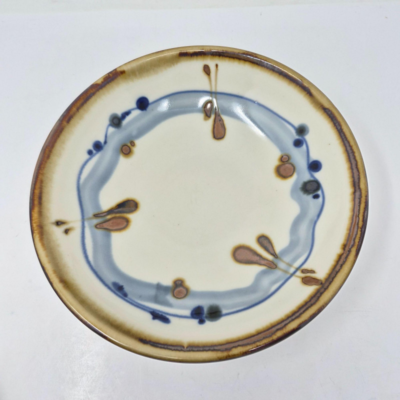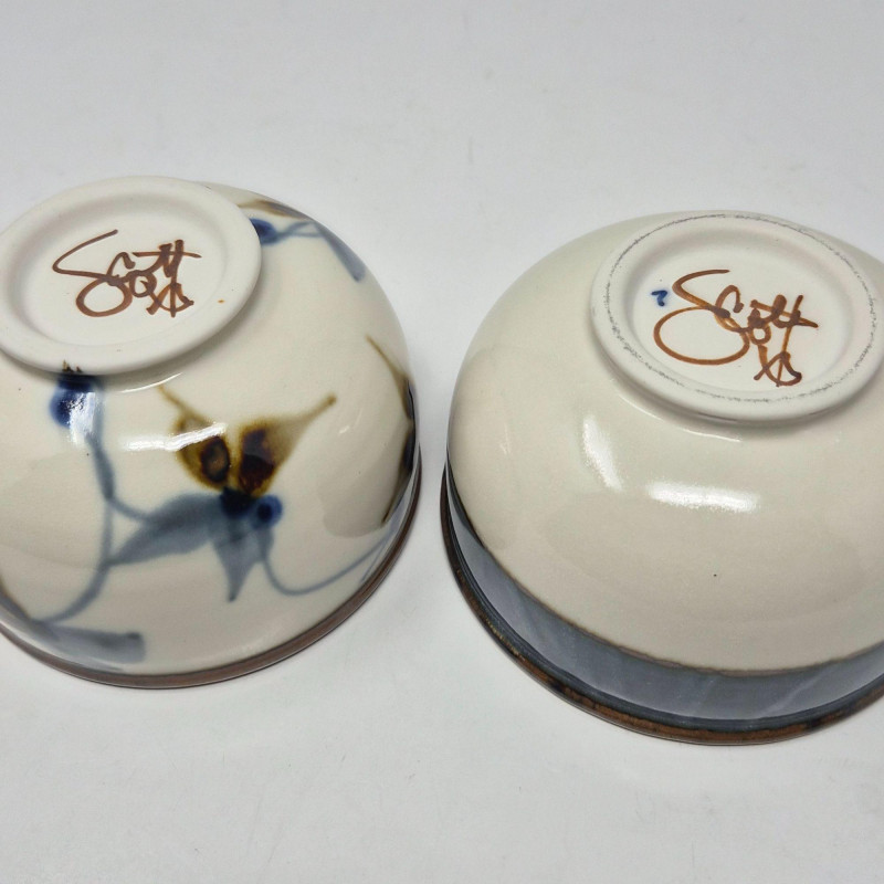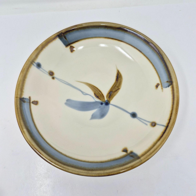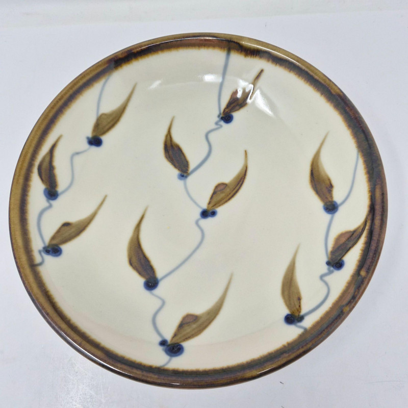 A beautifully coordinated selection of handmade Sam Scott pottery, featuring subtle floral motifs with a soothing blend of blue and natural earthtones. Each piece reflects the artist’s signature balance of form, function, and organic design. Measurements: A warm, artisan‑crafted grouping ideal for collectors of studio pottery or anyone who appreciates handmade servingware with character and charm.