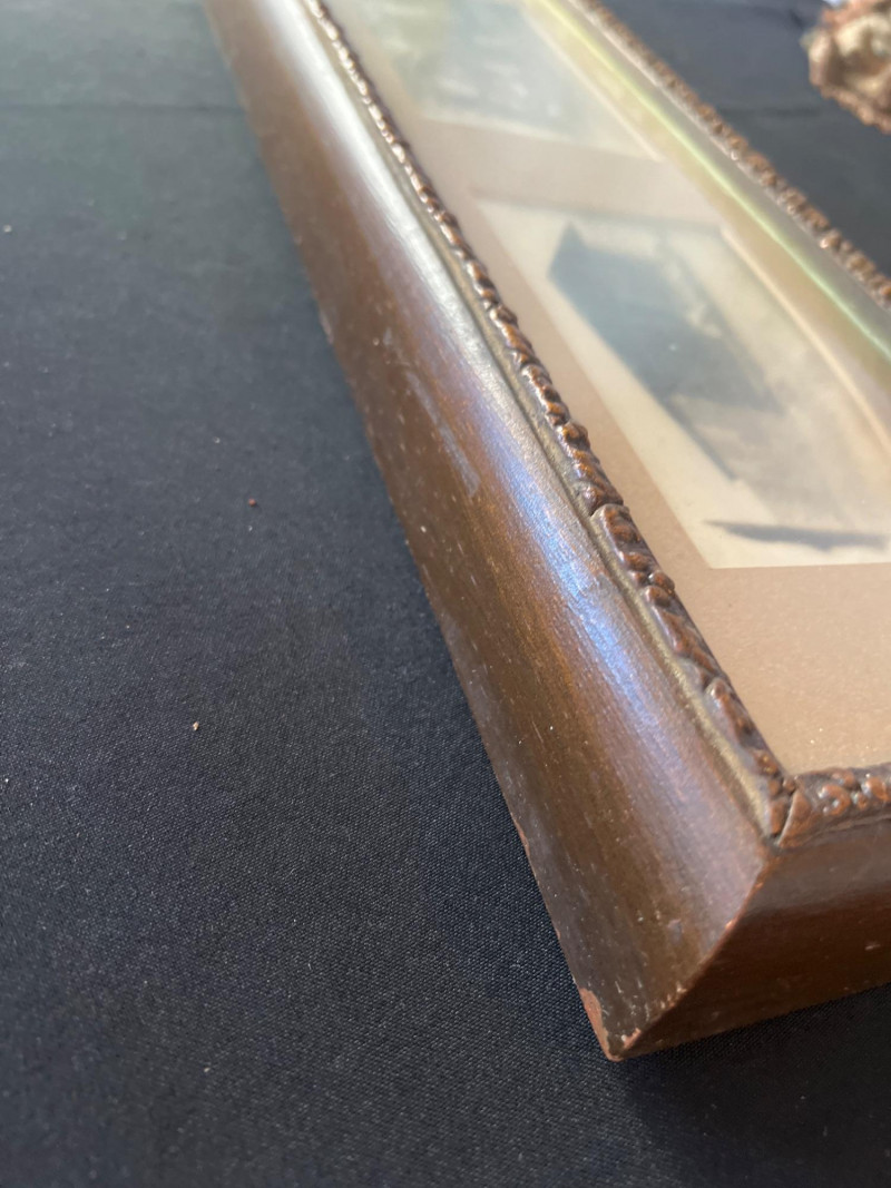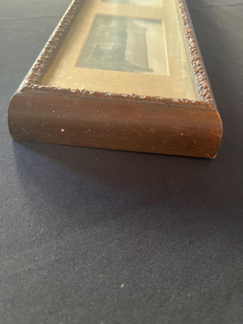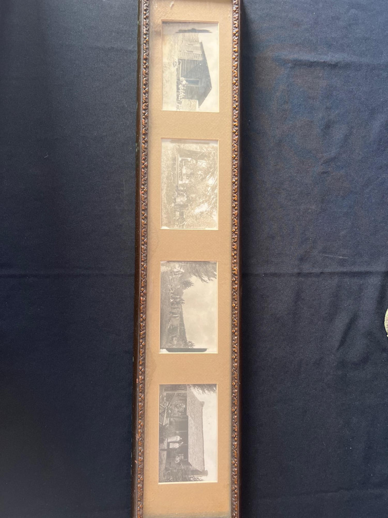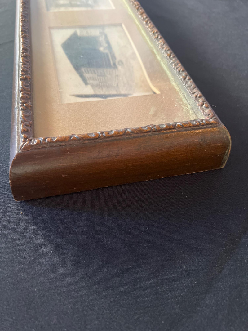 This striking horizontal framed photo collage captures scenes from Old Pioneer Days between 1911 and 1914, preserving early‑20th‑century life in a compelling panoramic format. Measuring approximately 31.5" x 6.25" x 1.75", the piece features a series of vintage photographs arranged in a period frame, offering a window into community gatherings, frontier personalities, and the spirit of early settlement culture. A wonderful display piece for history enthusiasts, Western collectors, or anyone drawn to authentic early‑American imagery.
