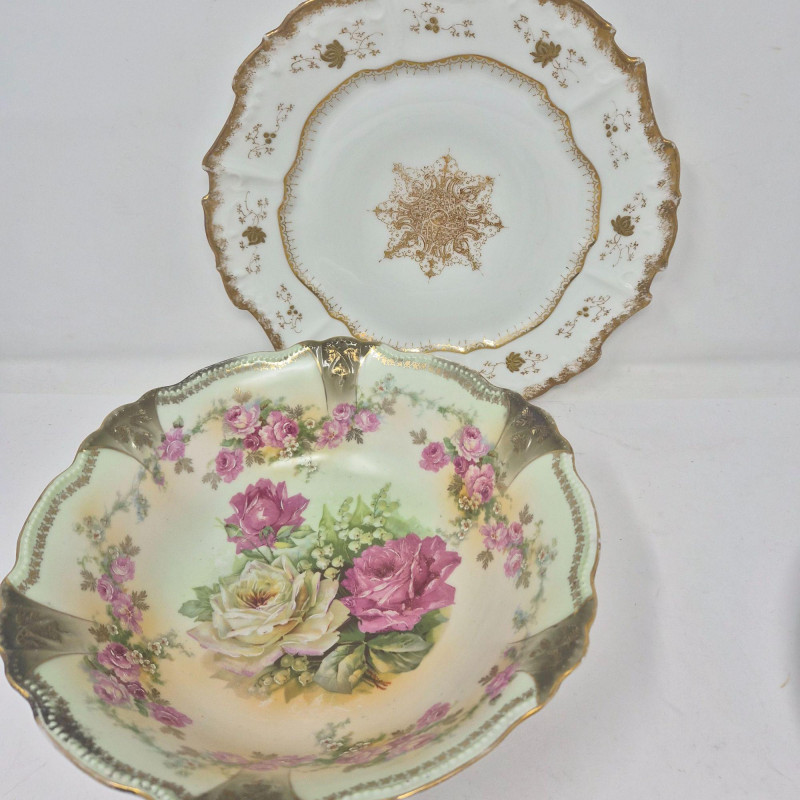 Lot # 42 - Vintage & Antique Floral Plates, Footed Bowl - Limoges, Haviland