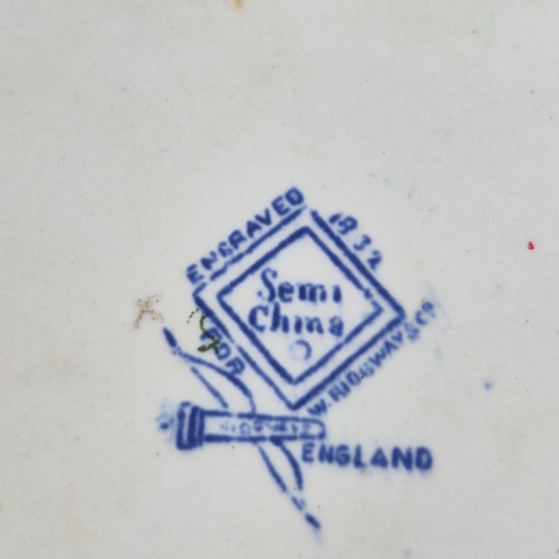 A beautiful Ridgeway Blue Willow covered dish from England, dated 1932, featuring the iconic chinoiserie landscape pattern that has charmed collectors for generations. This lidded serving piece measures approximately 10" x 8.5" x 5.5" and showcases crisp blue transferware detailing with traditional Ridgeway craftsmanship. A lovely addition to a Blue Willow collection, a vintage kitchen display, or any curated china cabinet.