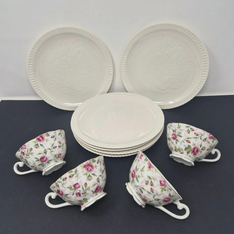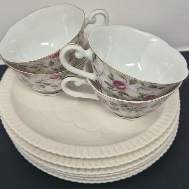 Lot # 48 - Luncheon Tea Set – Syracuse Plates & Lefton Hand‑Painted Cups
