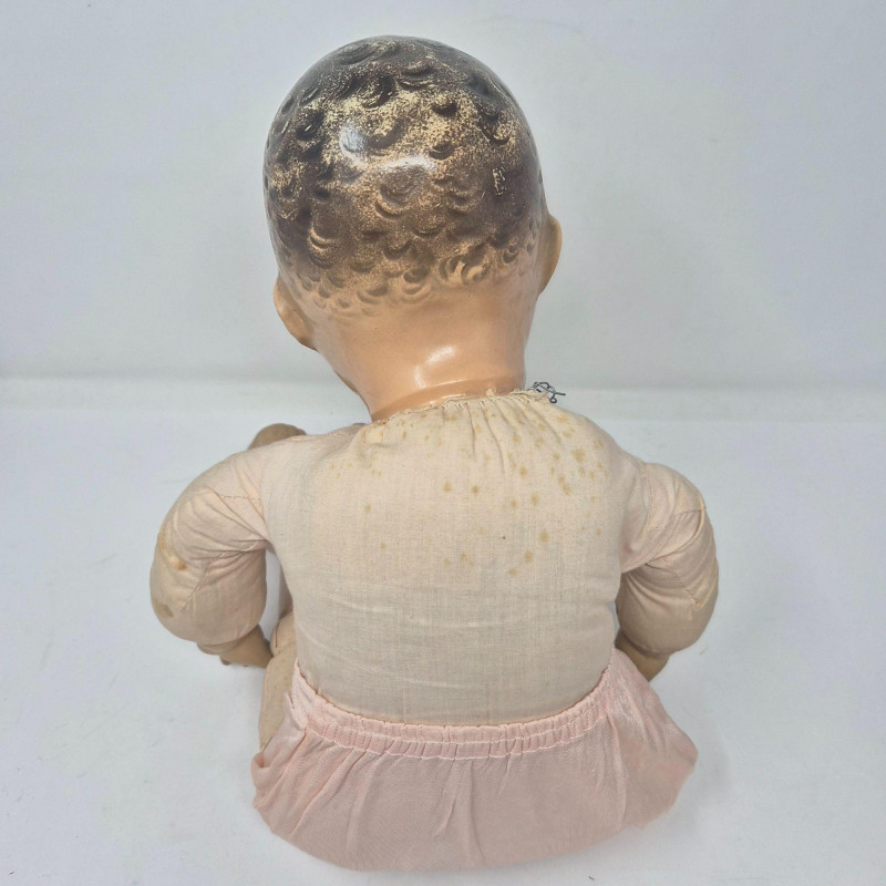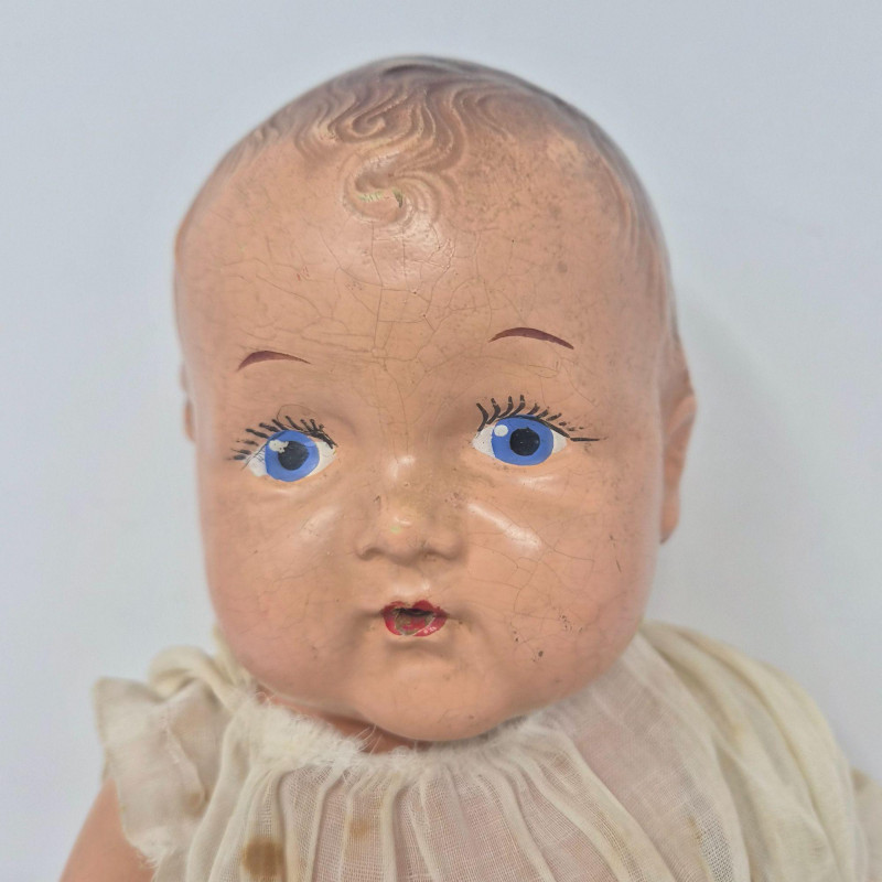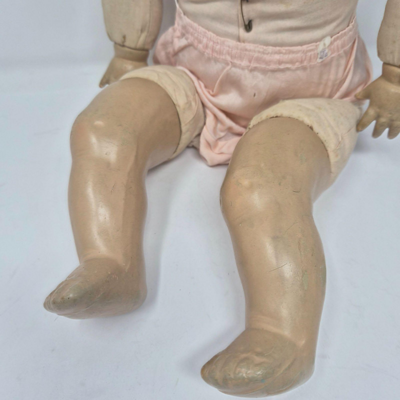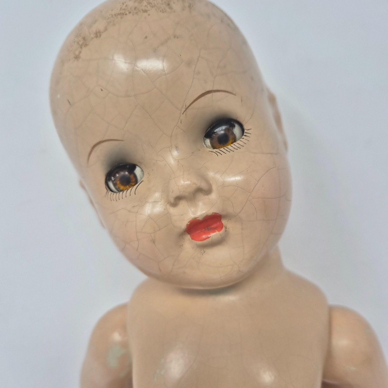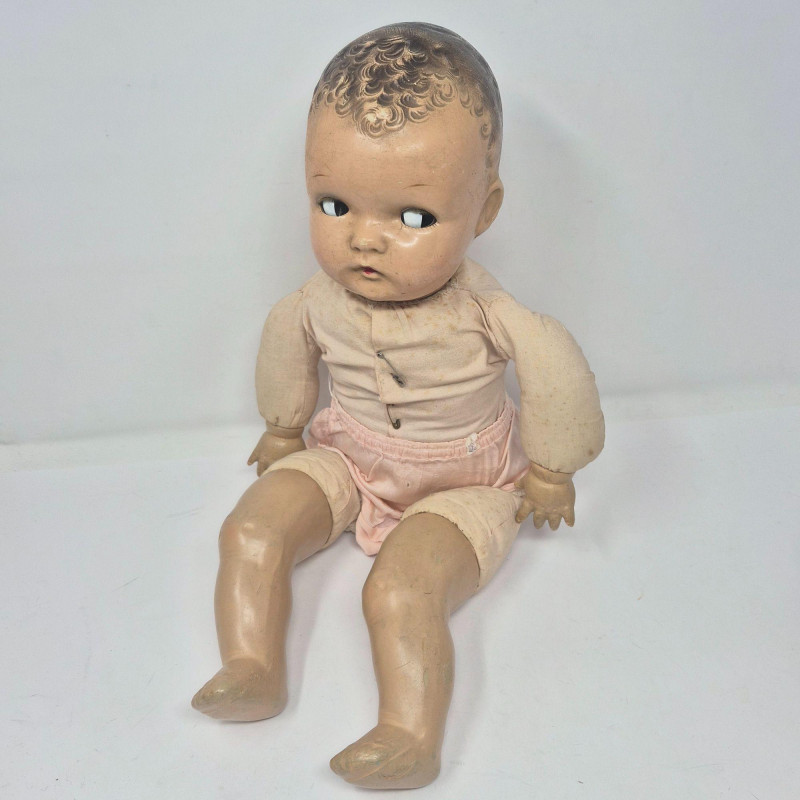 A nostalgic mix of 1930s–1950s composite dolls, ideal for restoration, repurposing, or creative craft projects. The lot includes a side‑looking baby doll with a composite head, arms, and legs paired with a soft fabric body, full of that classic early‑mid‑century charm. Dolls in this group range from 16" to 22", offering a variety of sizes and styles for doll artists, vintage enthusiasts, and makers who love giving old treasures new life.