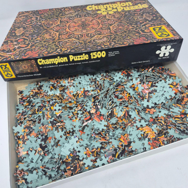 Included in this lot are a Charles Wysocki puzzle with his signature Americana charm, a Paris‑themed puzzle by Nathan, and an FX Schmid mandala puzzle known for its vibrant, intricate design.