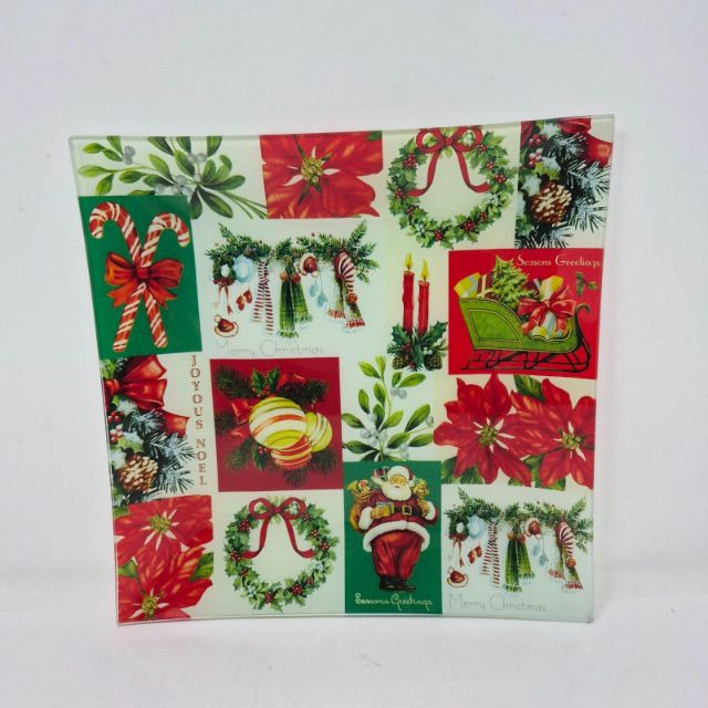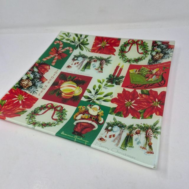 A festive holiday duo perfect for serving, gifting, or brightening your seasonal kitchen décor. This lot includes a 12" x 12" square glass Christmas platter, ideal for cookies, appetizers, or display.