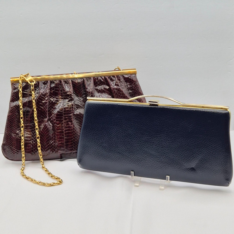 Lot # 18 - Brown Snakeskin & Deep Navy Evening Clutch Duo