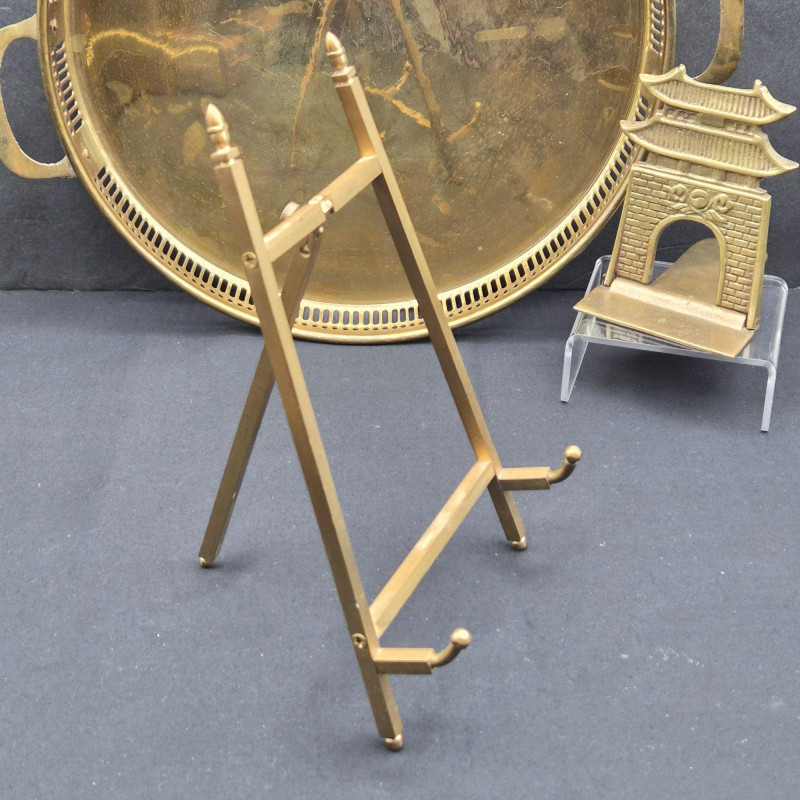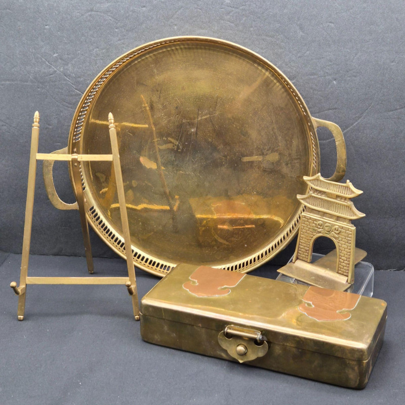 Lot # 20 - Brass Assortment: Easel, Tray, Bookend & Saks Fifth Ave Box