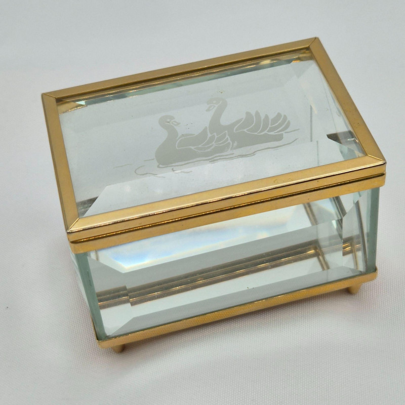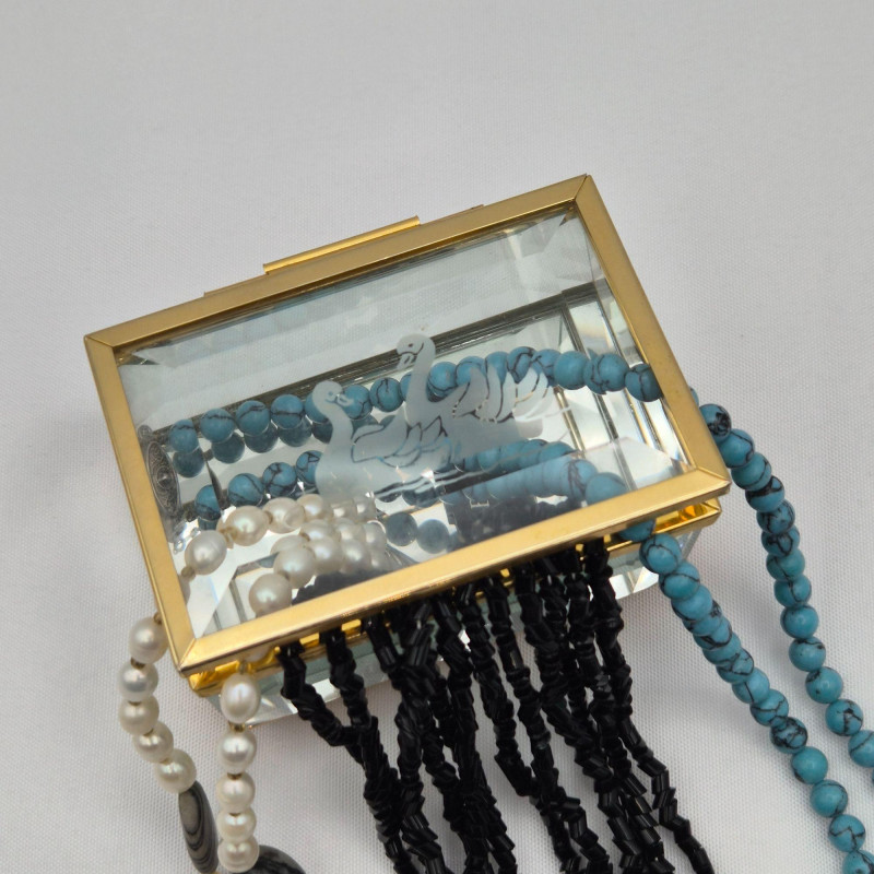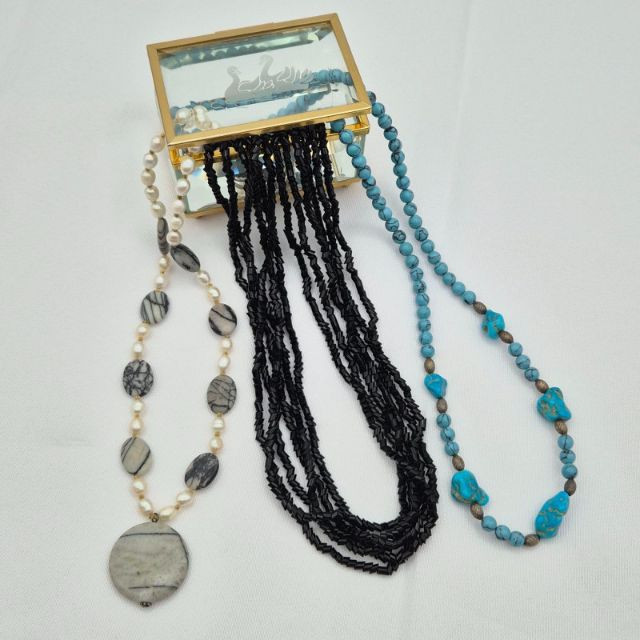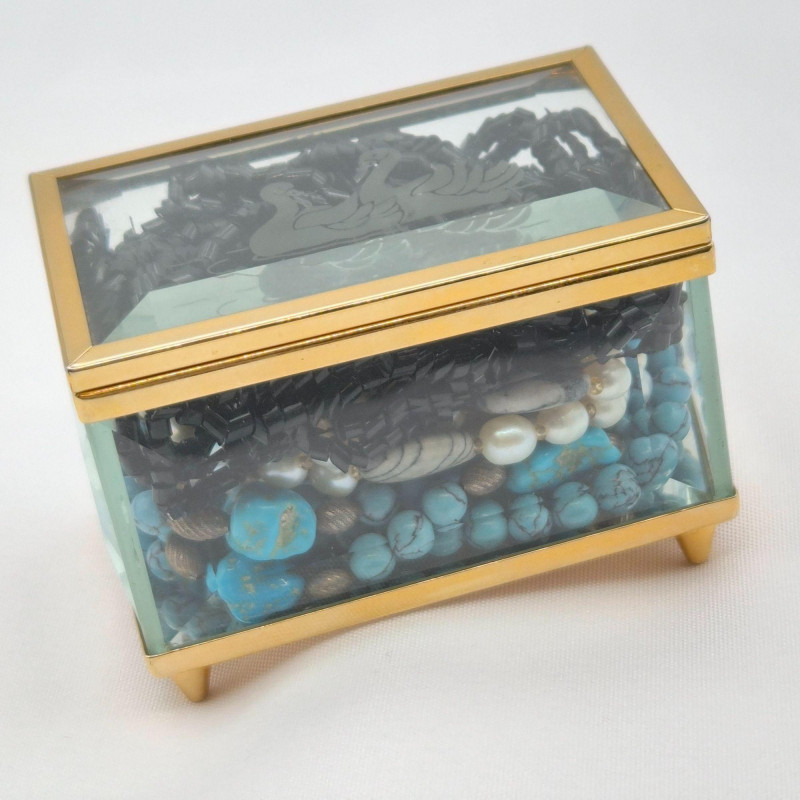 Lot # 23 - Crystal Swan Etched Box with Three Distinct Beaded Necklaces
