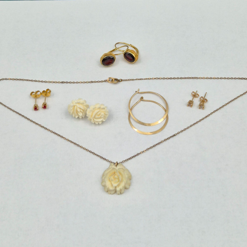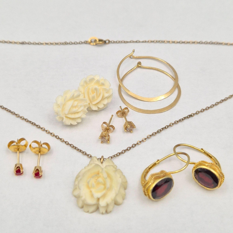 A spirited mix of 14k gold, gold-filled sophistication, and artful accents - this curated jewelry assortment blends sparkle, sentiment, and style. The lot includes: A delightful blend of fine gold, floral artistry, and gemstone sparkle — perfect for collectors, resellers, or anyone who loves a mix with personality.