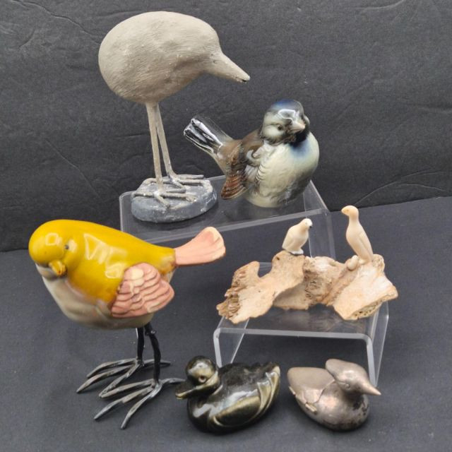 A charming assortment of decorative bird figures in a mix of materials, styles, and eras—perfect for collectors or anyone who loves avian décor. A delightful mix of textures and craftsmanship, offering everything from folk‑art charm to polished ceramic and stonework.
