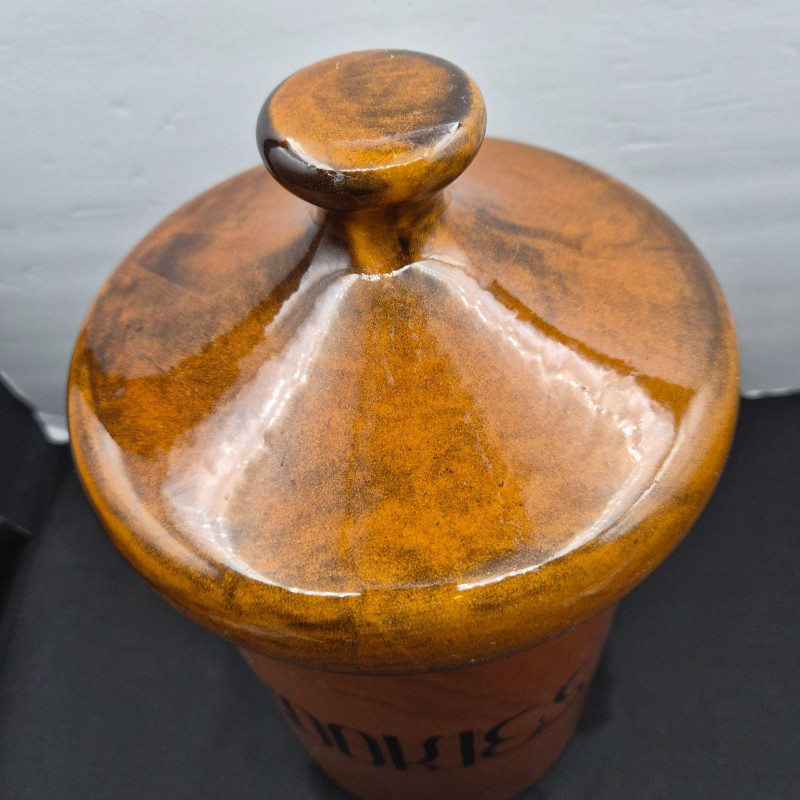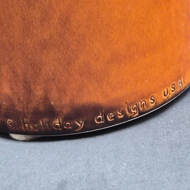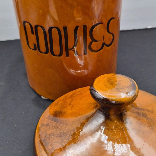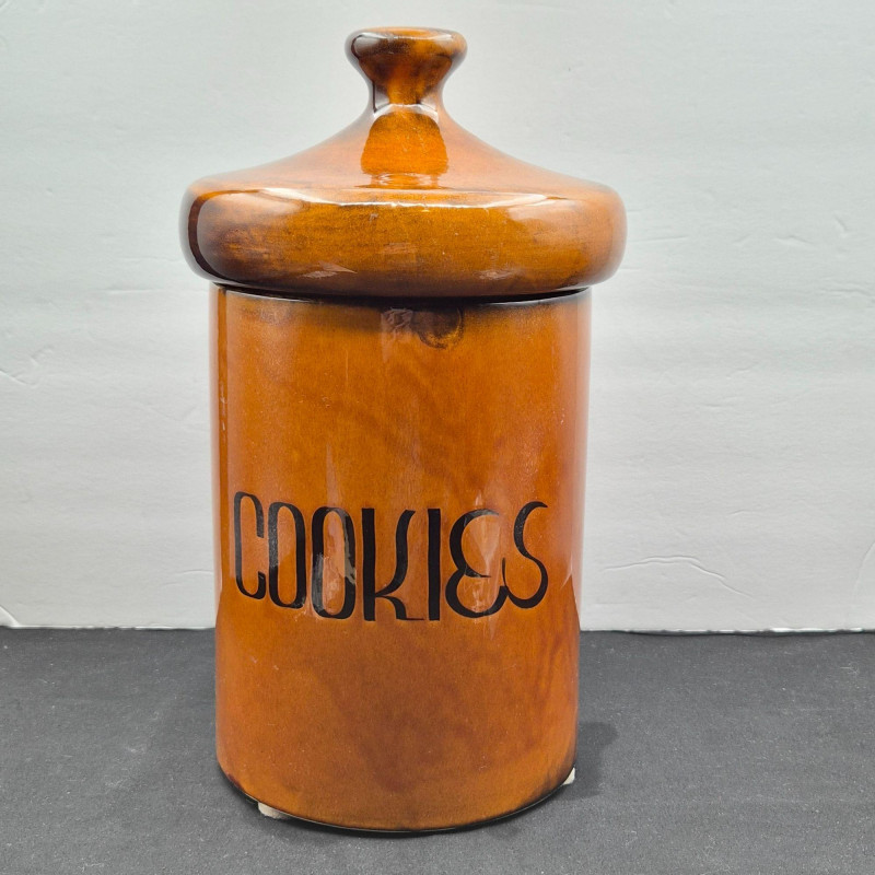 A charming mid-century ceramic cookie jar in a nutmeg-glazed acorn form, produced by Holiday Designs USA. This lidded jar features: A delightful blend of function and whimsy, ideal for autumnal decor, retro kitchens, or collectors of American pottery.