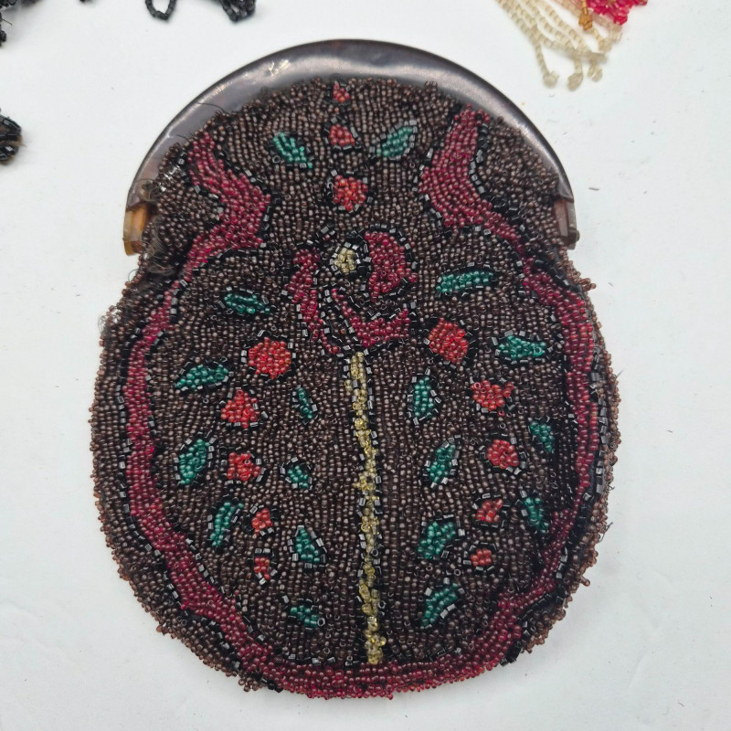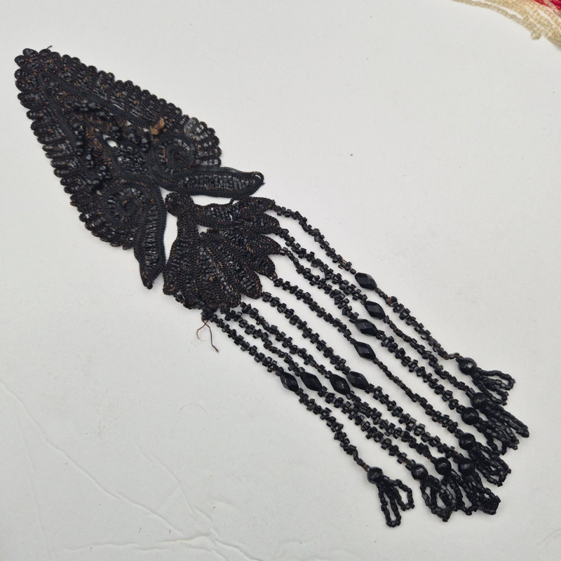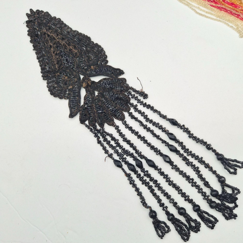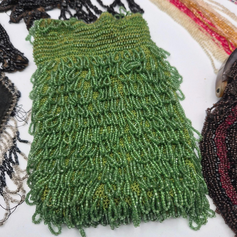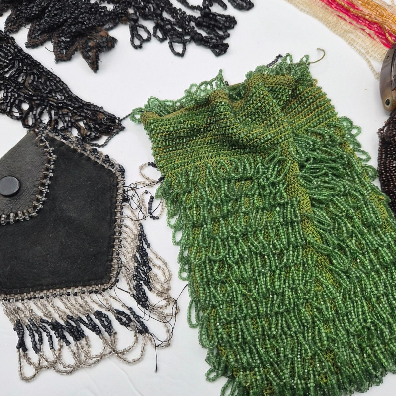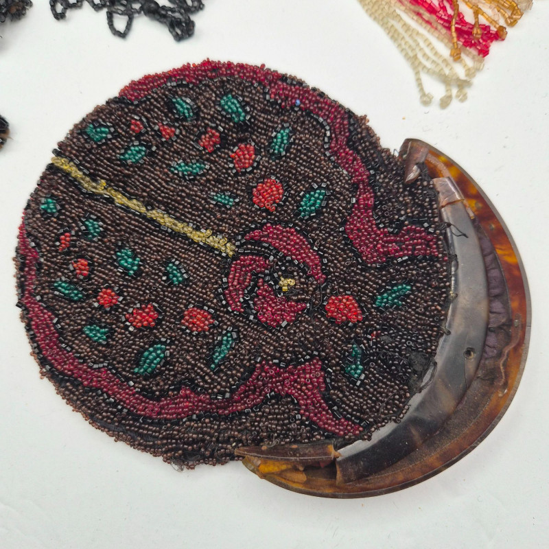 A vibrant assortment of antique seed bead components, ideal for creative reuse or restoration. This lot includes: Whether you're a textile artist, costume designer, or vintage enthusiast, this collection offers a treasure trove of historic beadwork ready for new life.
