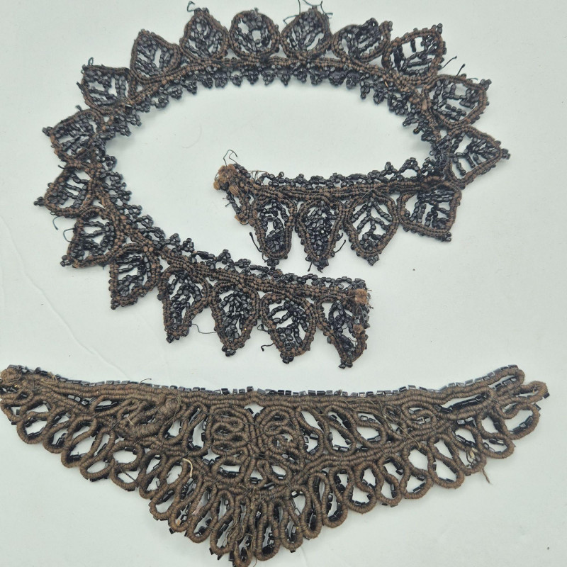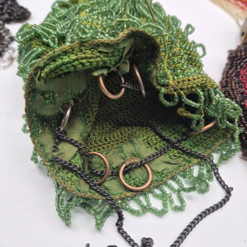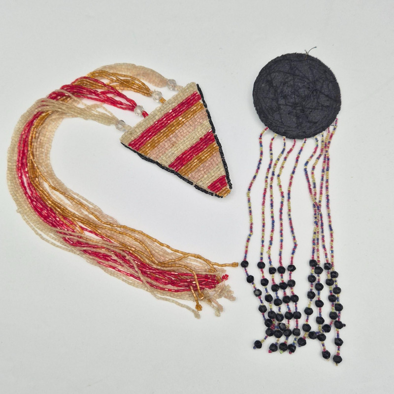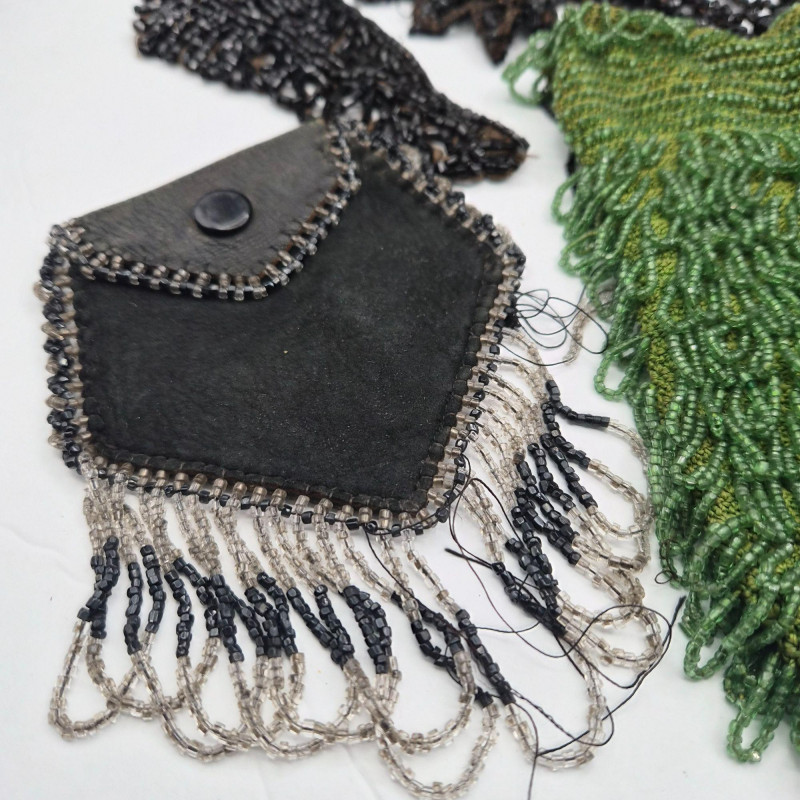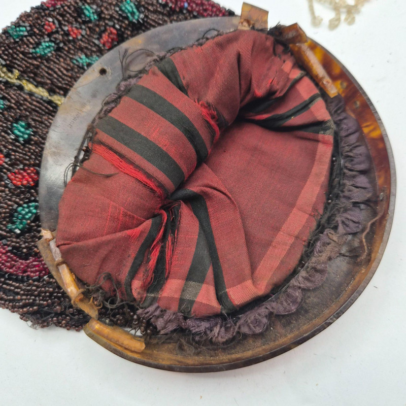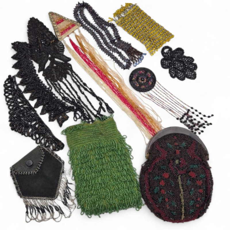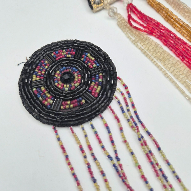 A vibrant assortment of antique seed bead components, ideal for creative reuse or restoration. This lot includes: Whether you're a textile artist, costume designer, or vintage enthusiast, this collection offers a treasure trove of historic beadwork ready for new life.