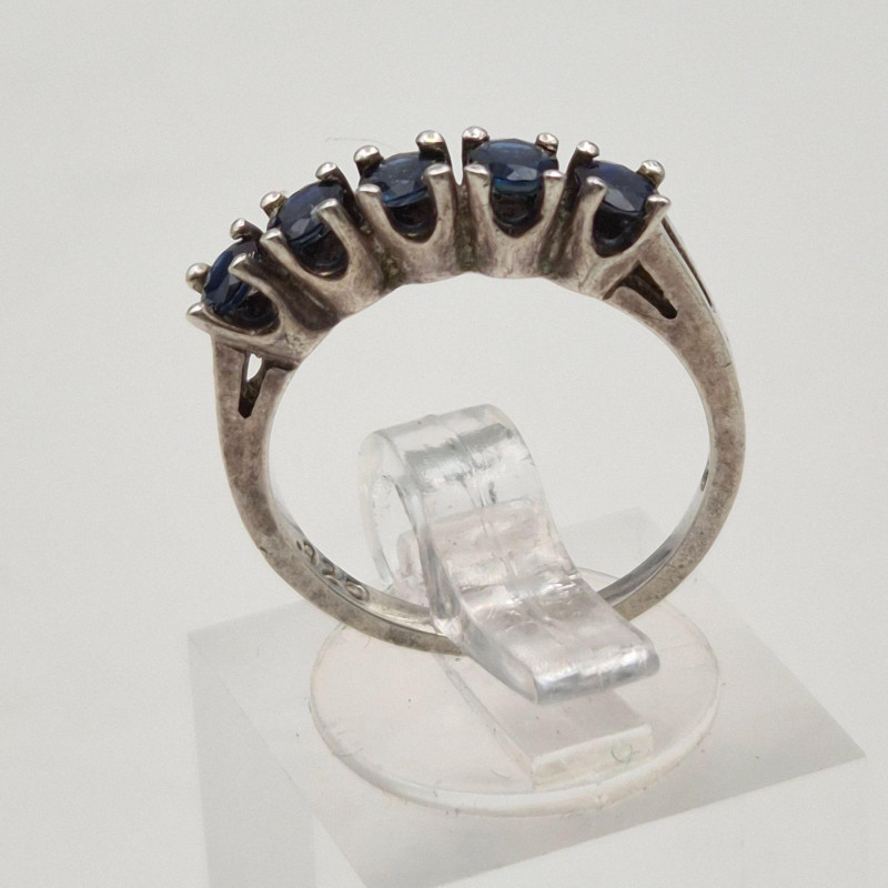 A mesmerizing 1970s five-stone sapphire ring, prong-set in deep blue and sized at 4, paired with a Ross-Simons blue topaz cross pendant on an 18" gold-over-silver chain. Together, these pieces evoke twilight glamour and quiet strength, perfect for collectors or those drawn to rich blues and meaningful design.