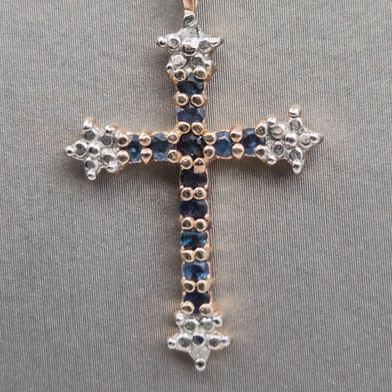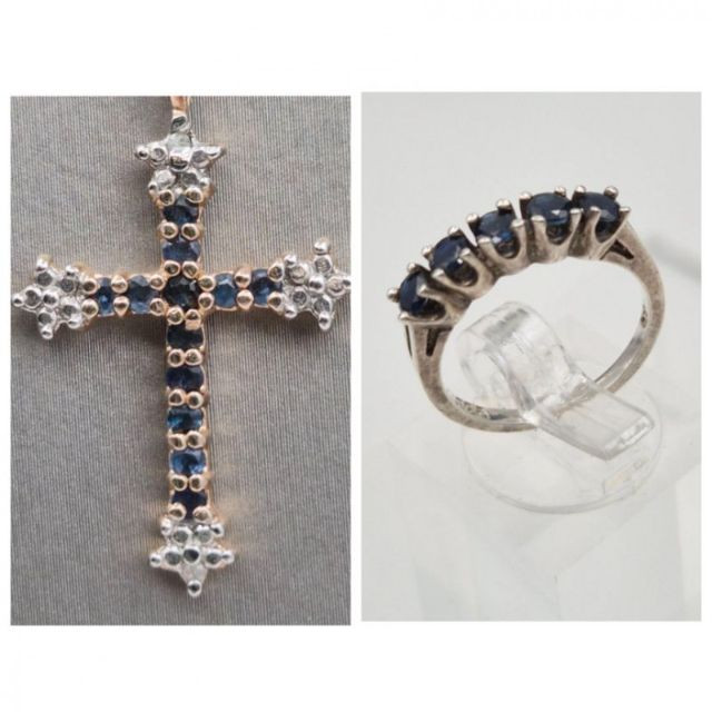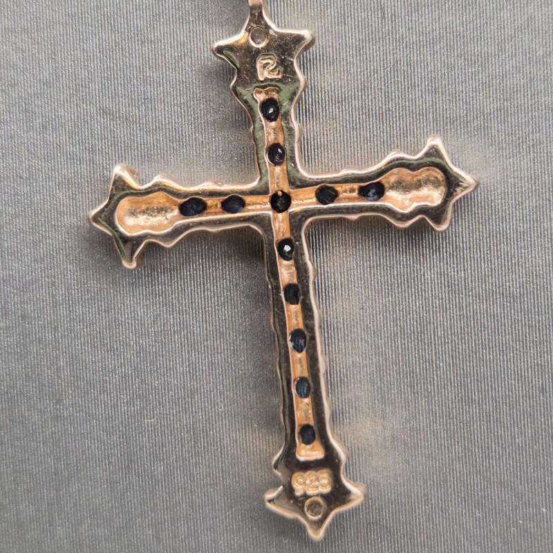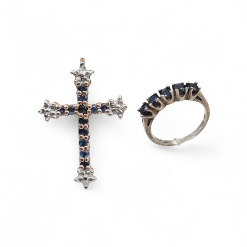 Lot # 59 - Deep Blue Elegance: Spinel & Sapphire - Cross Necklace, 925 Ring