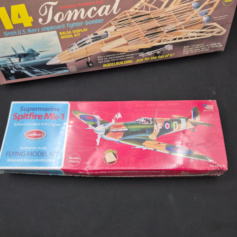 Lot # 62 - Airplane Model Kits: Guillow's F-40, Spitfire MK1, Build 'n Show F-14