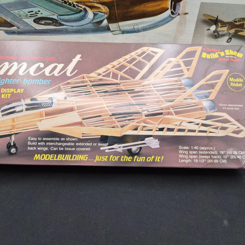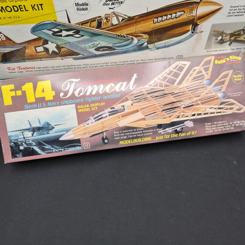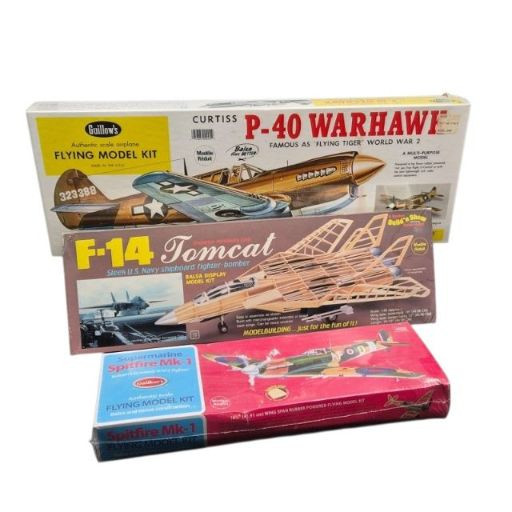 A trio of Guillow’s and Build 'n Show, vintage airplane model kits, perfect for builders and aviation enthusiasts. Includes the F‑40, Supermarine Spitfire Mk1, and F‑14 Tomcat. A great mixed lot for hobbyists, collectors, or anyone who loves mid‑century model‑building culture.